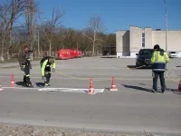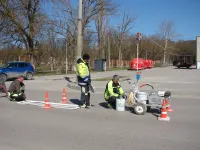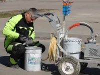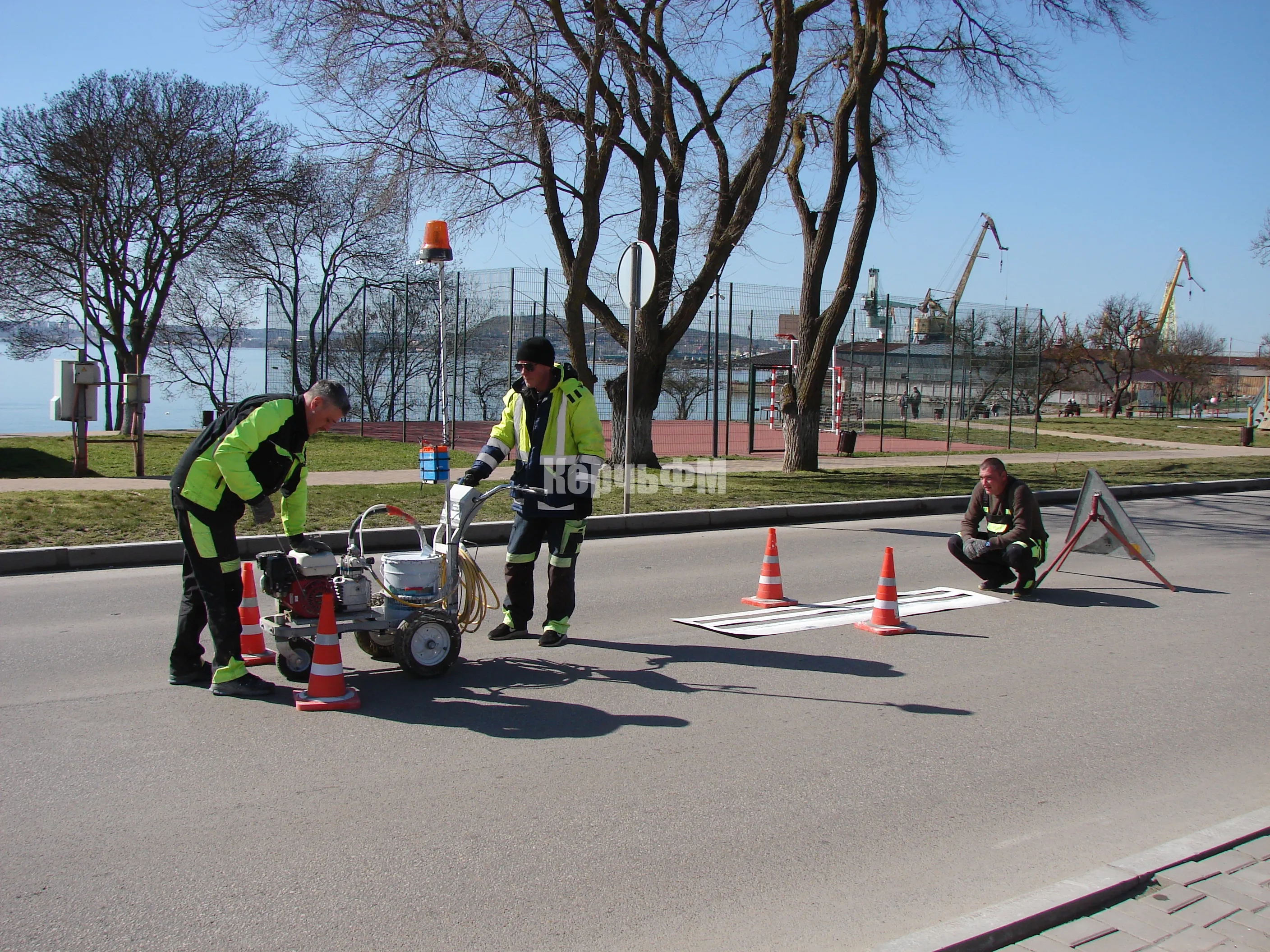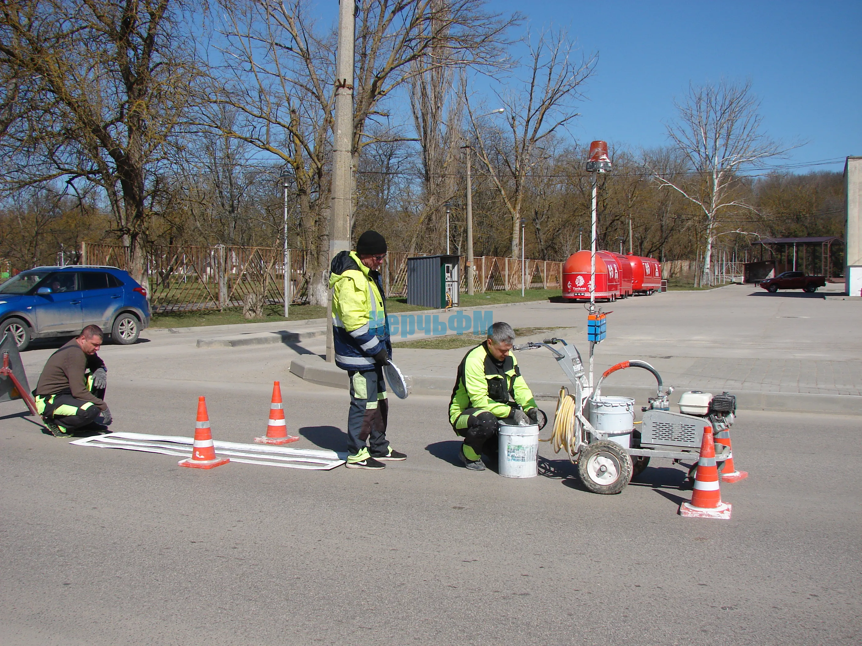 Организация "Безопасные дороги Крыма" из Симферополя сегодня наносит дорожную разметку в районе зоны отдыха "Черепашка".
