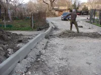 Выполнен большой объем по укладке бордюрного камня вдоль тротуаров, внутриквартальных дорог и подходов к подъездам.