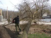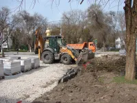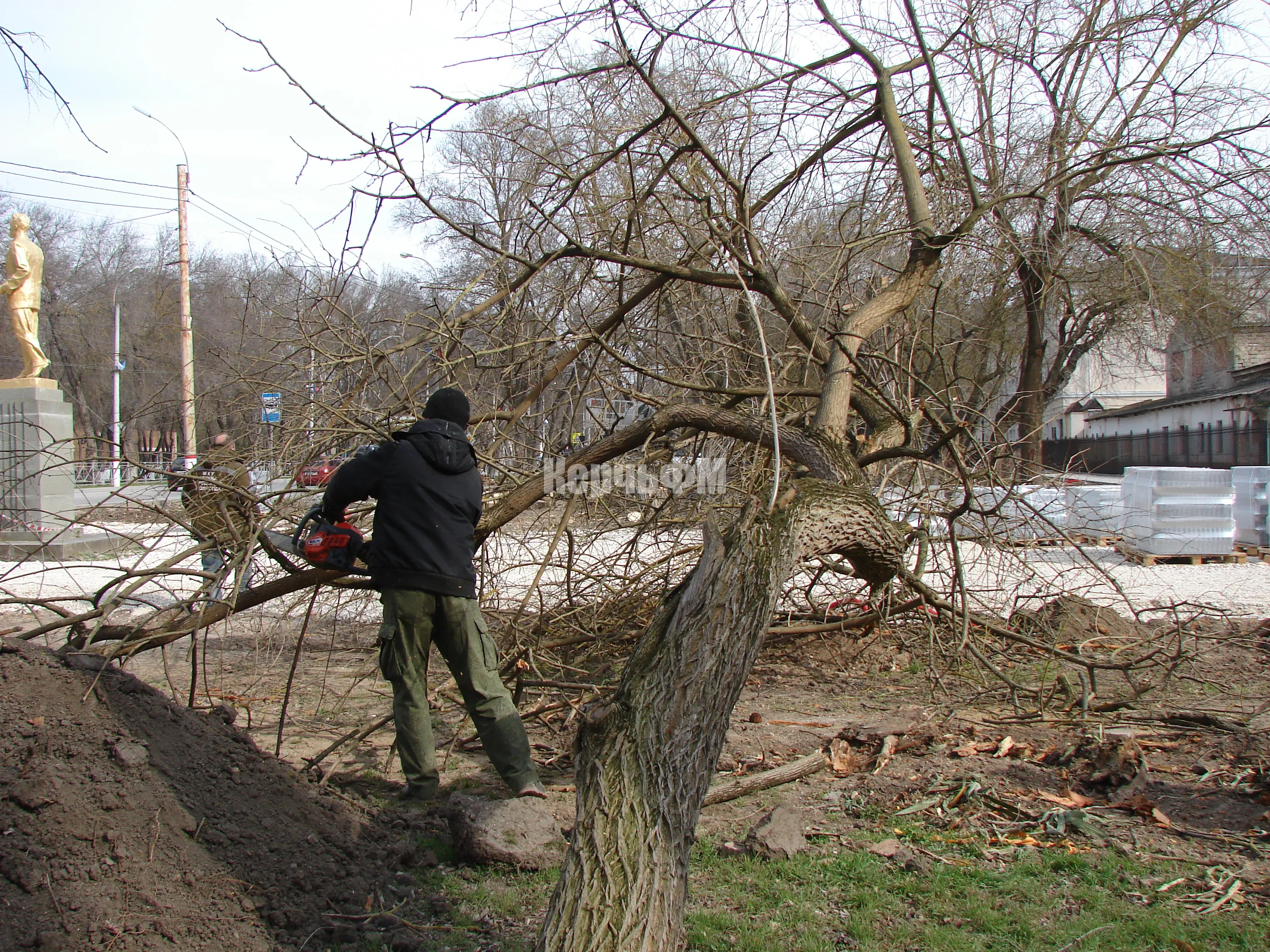 Работы ведутся со стороны памятника Петру Войкову.