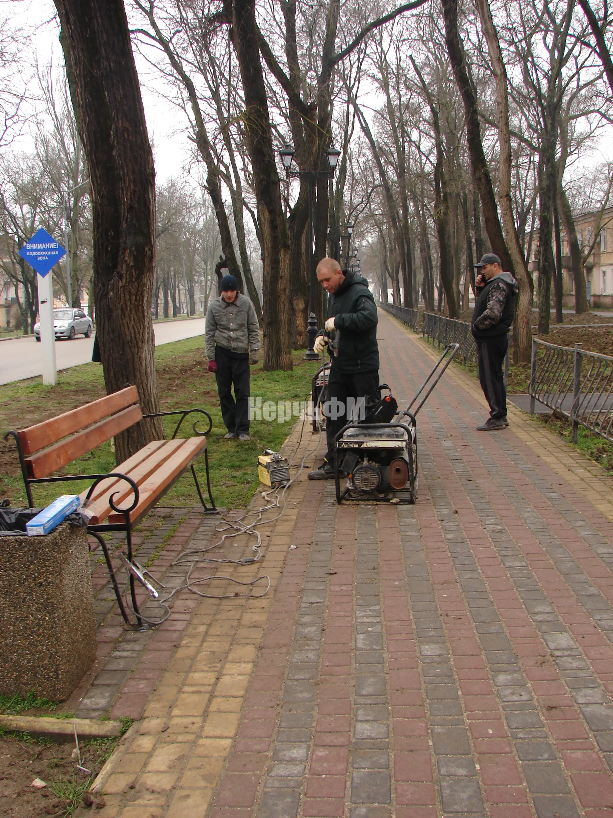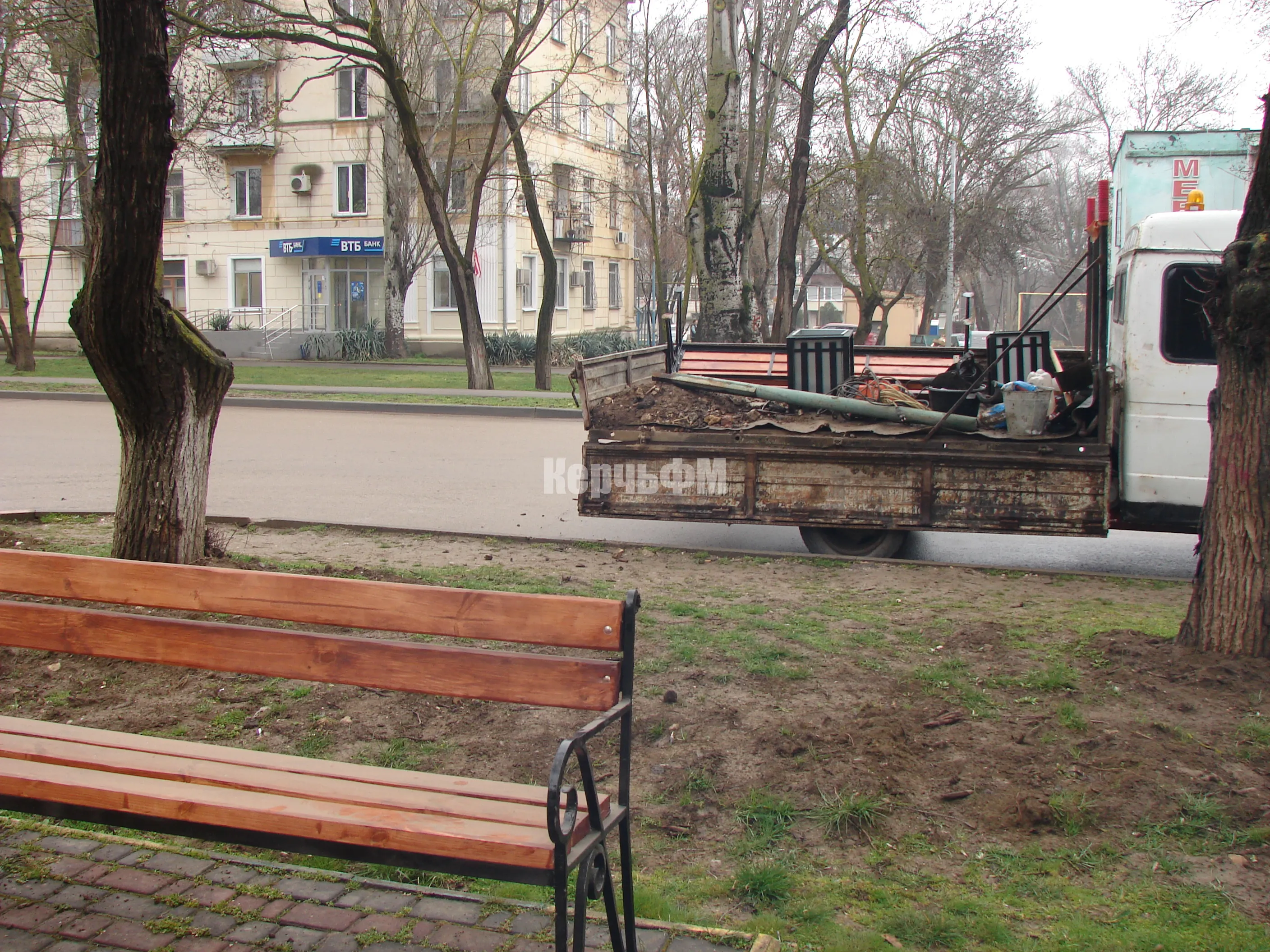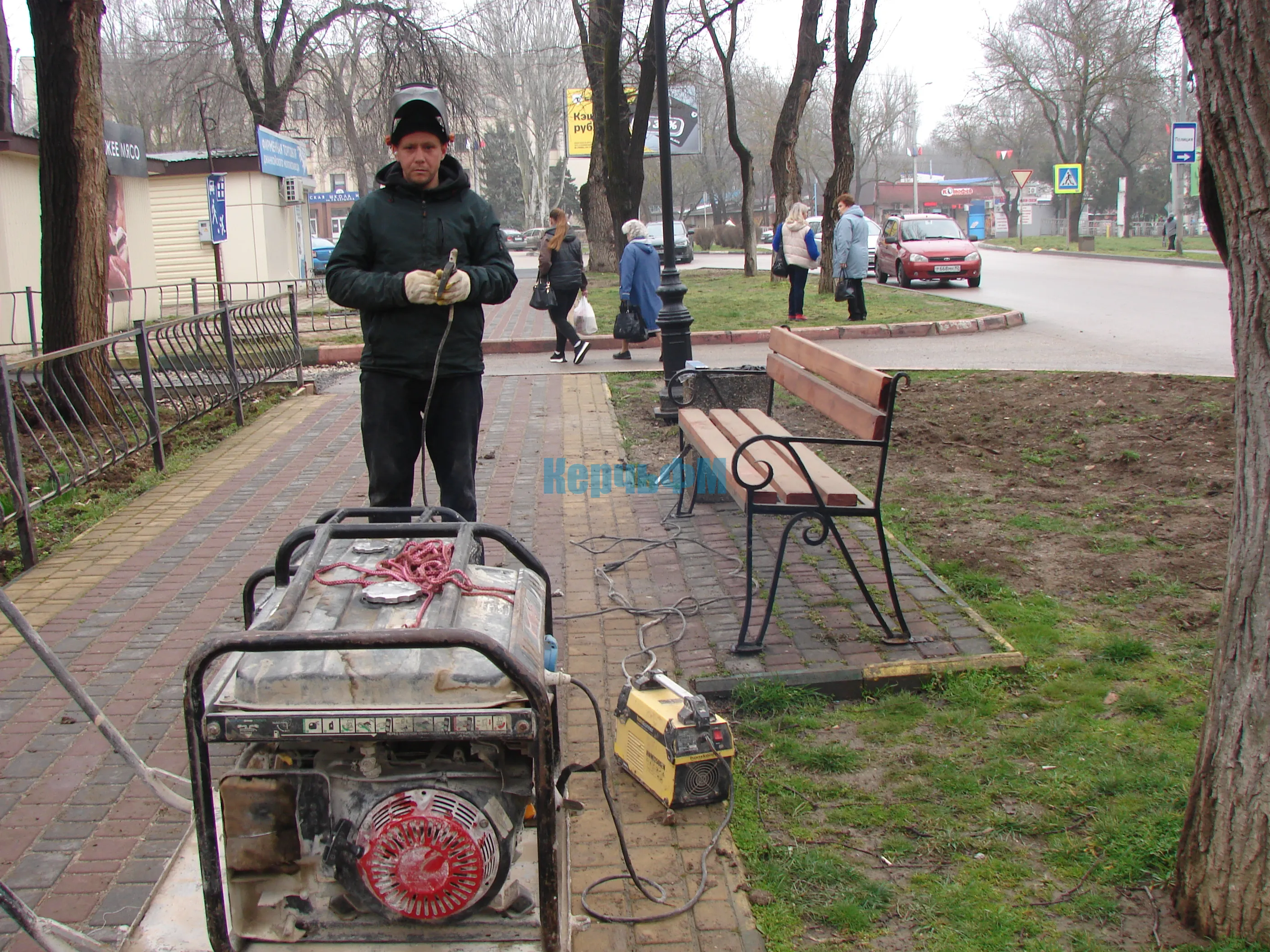 На аллее Казакова в Керчи начали устанавливать новые лавочки