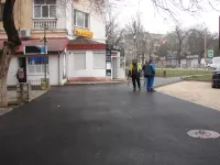 Заасфальтированы подходы к магазину, расположенному у перекрестка, и к пешеходному переходу, ведущему к остановке "Казакова".