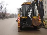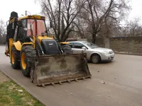 Водители думали, что это - временно, но прошло несколько дней, а за экскаватором никто не приходит.