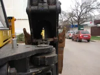 На выезде с дороги-дублера улицы Сморжевского на автомагистраль Кирова припарковался экскаватор.