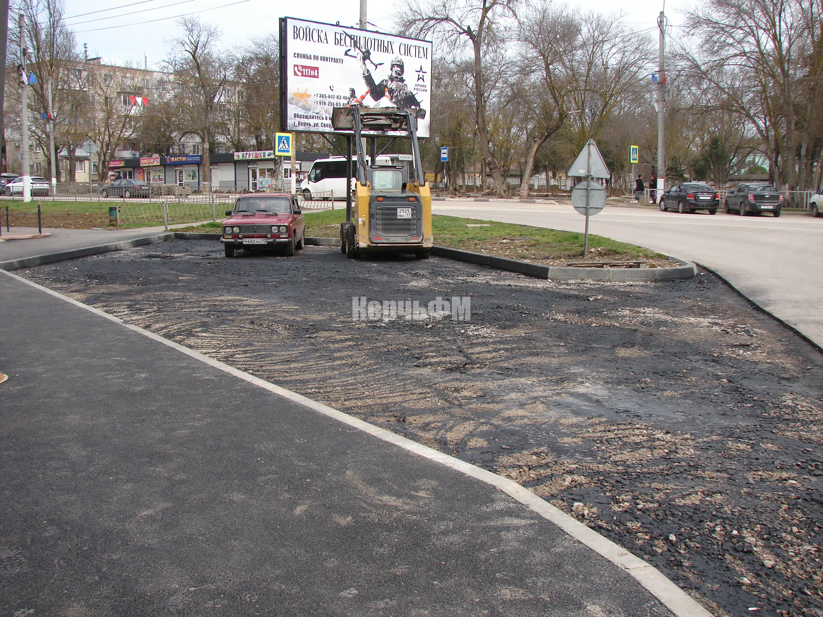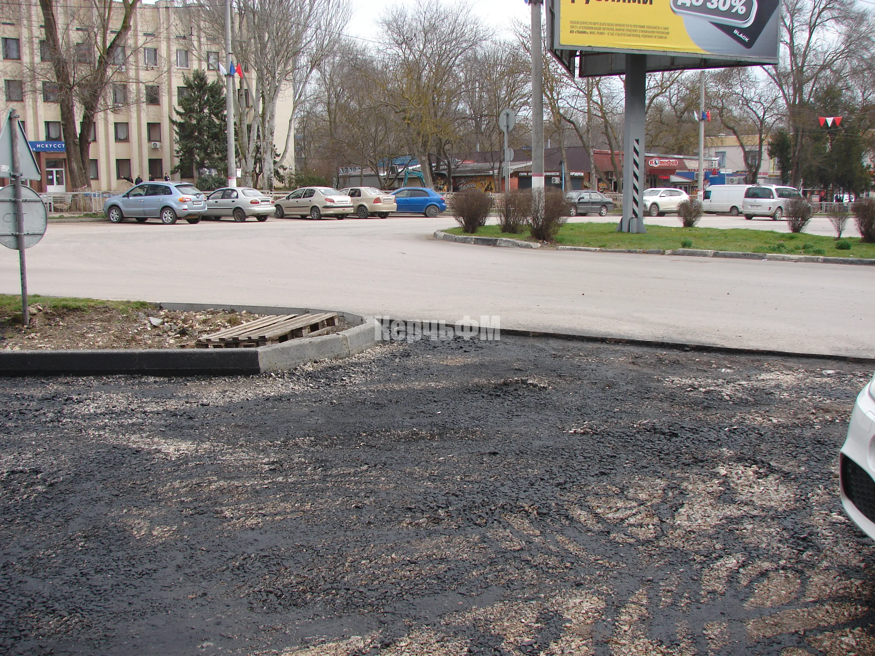 Как уже сообщал КерчьФМ, новую парковку определили в виде четырехугольника неправильной формы и обнесли бордюрами.