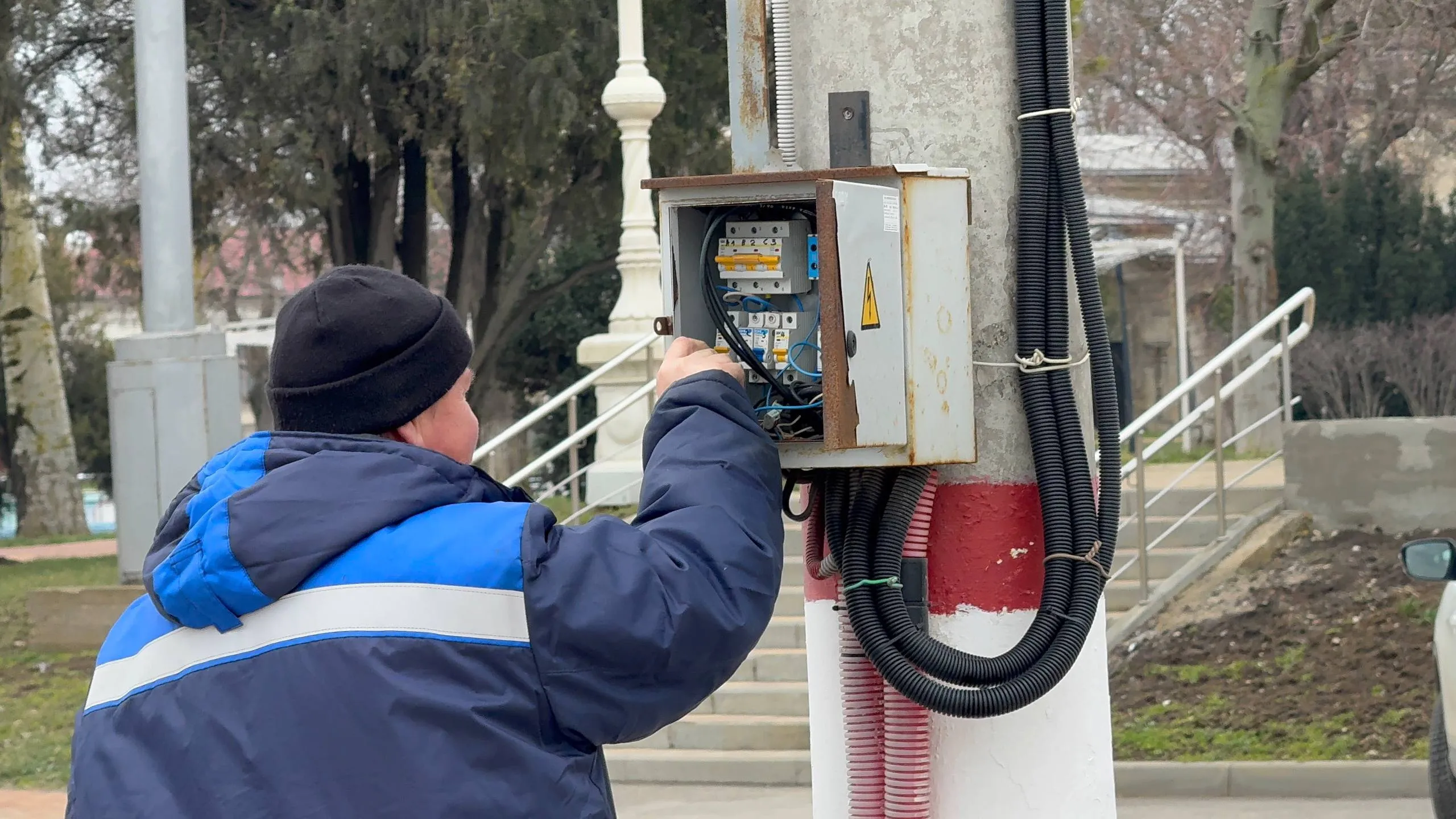 Сотрудники предприятия продолжают плановые работы, восстанавливают освещение вдоль дороги, ведущей в Аджимушкай. Там уже смонтировано 900 метров провода и 18 светильников.