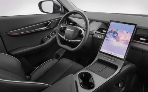 Внутреннее пространство Jaecoo J6 встречает водителя и пассажиров современным минималистичным дизайном. Центральным элементом интерьера стал впечатляющий вертикальный экран мультимедийной системы, который служит главным центром управления большинством функций автомобиля.