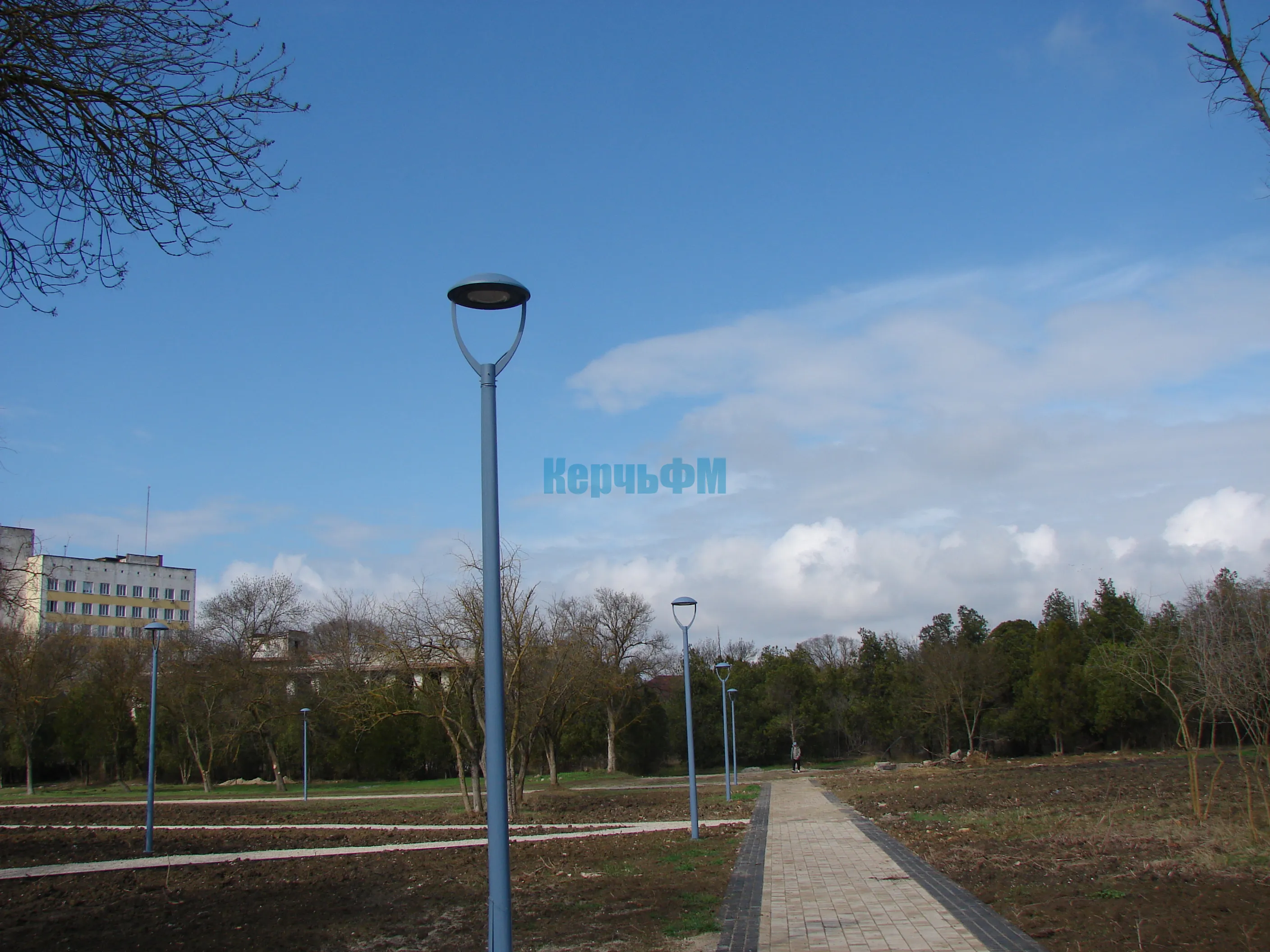 Установленные фонари уличного освещения тоже еще без светильников.