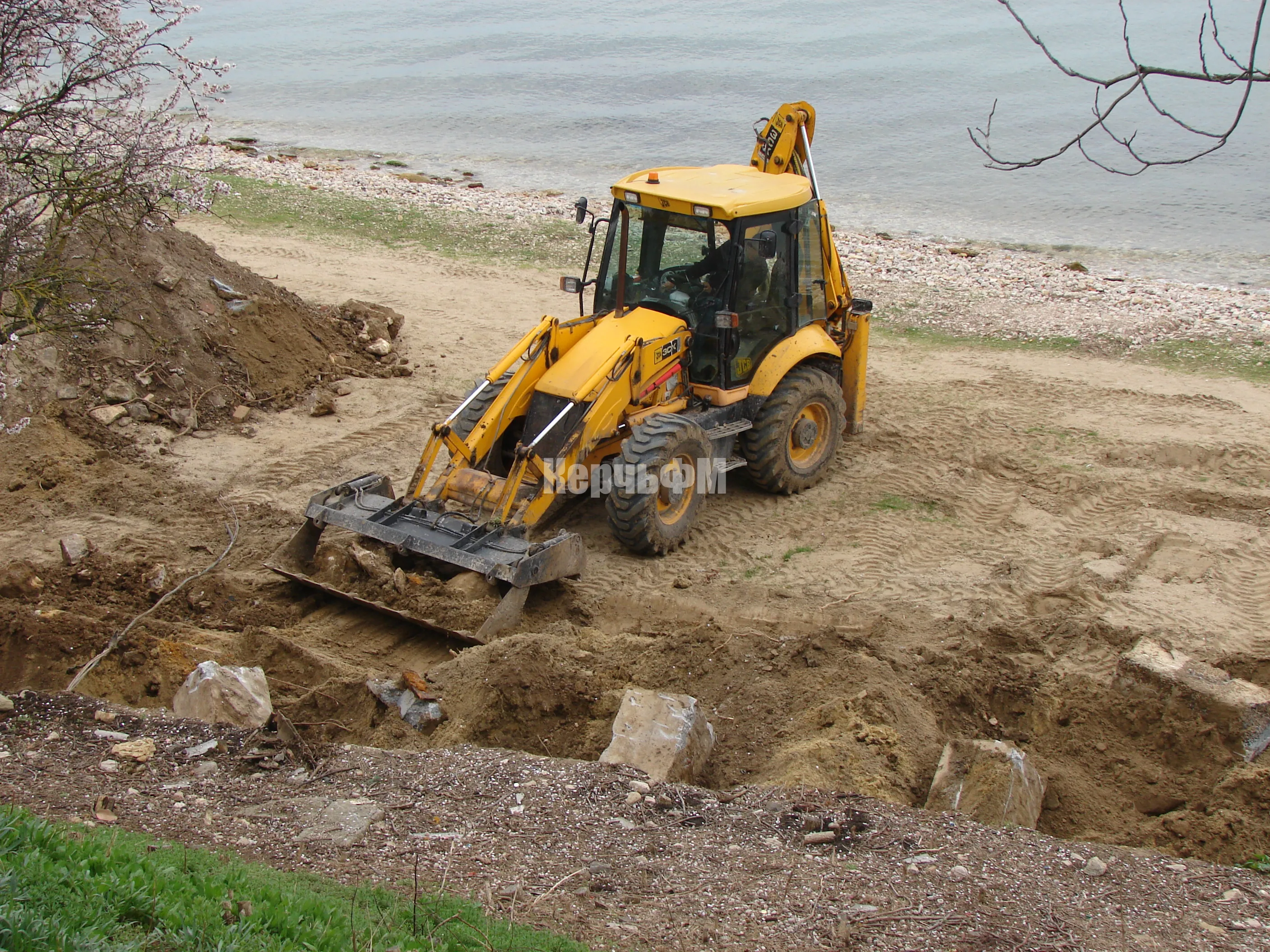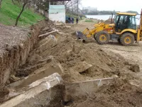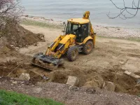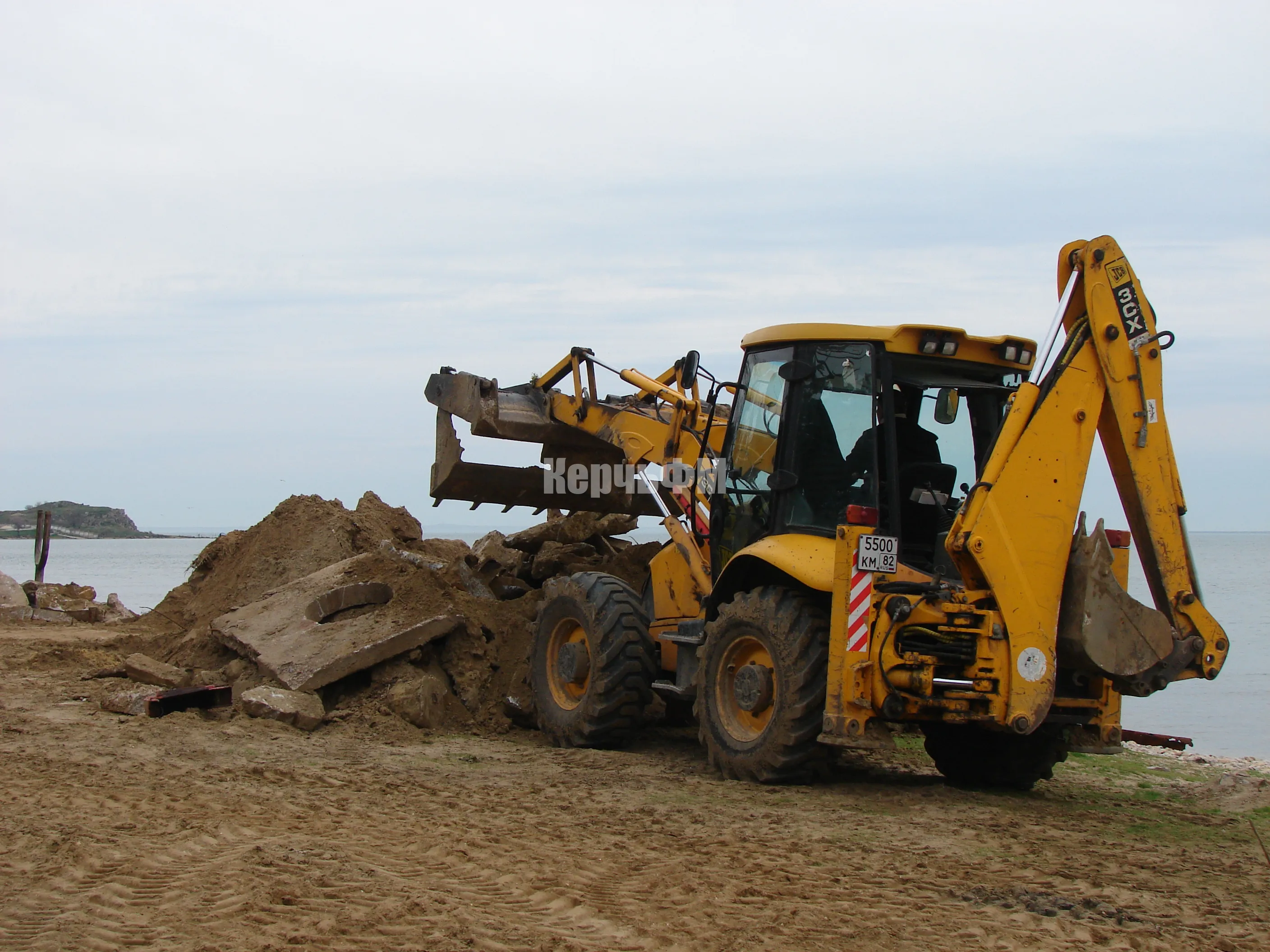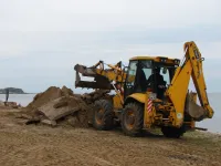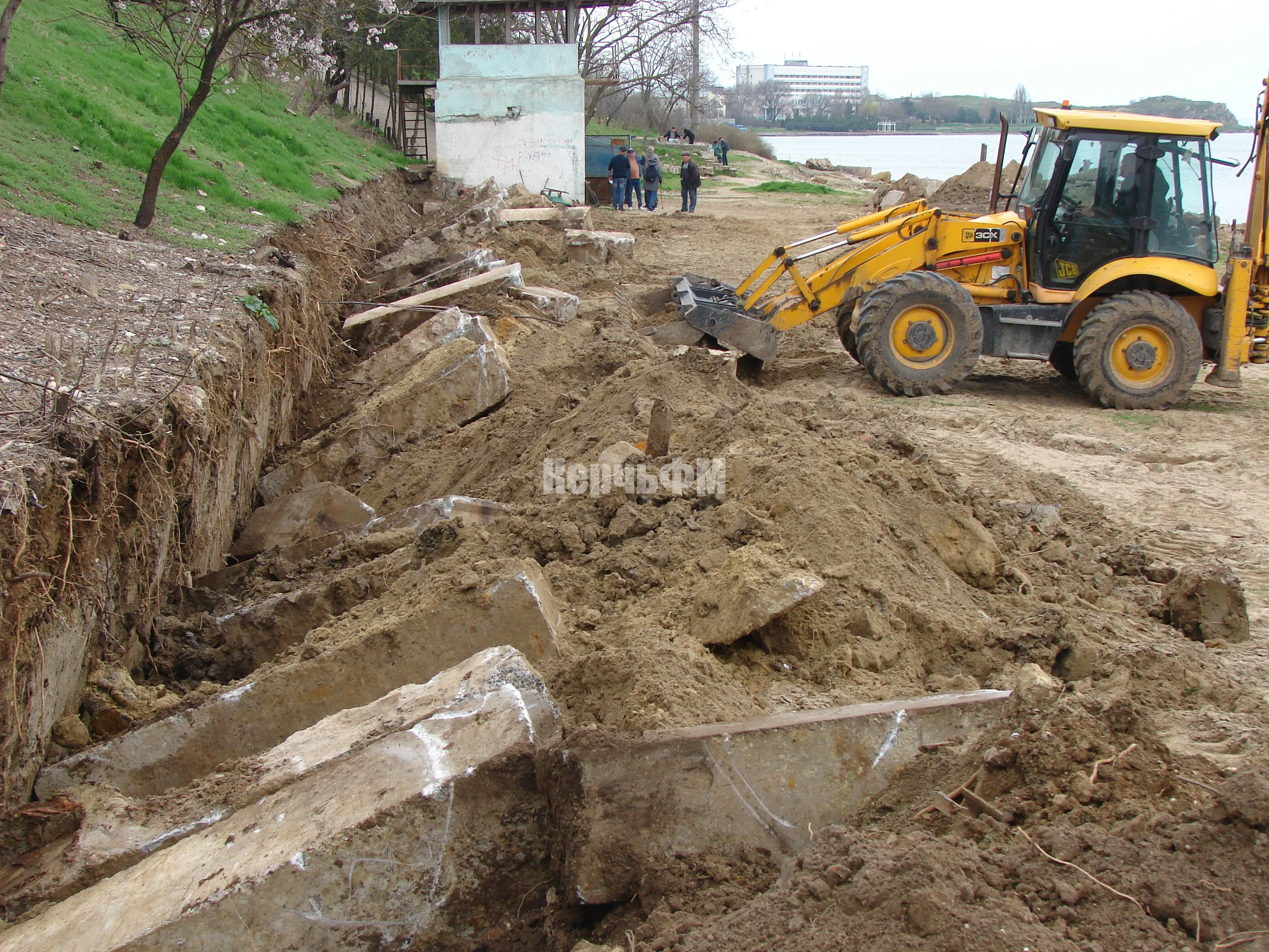 На самой пляжной зоне тяжелая техника демонтирует бетонные опоры подпорной стены, где в прошлом были навесы.