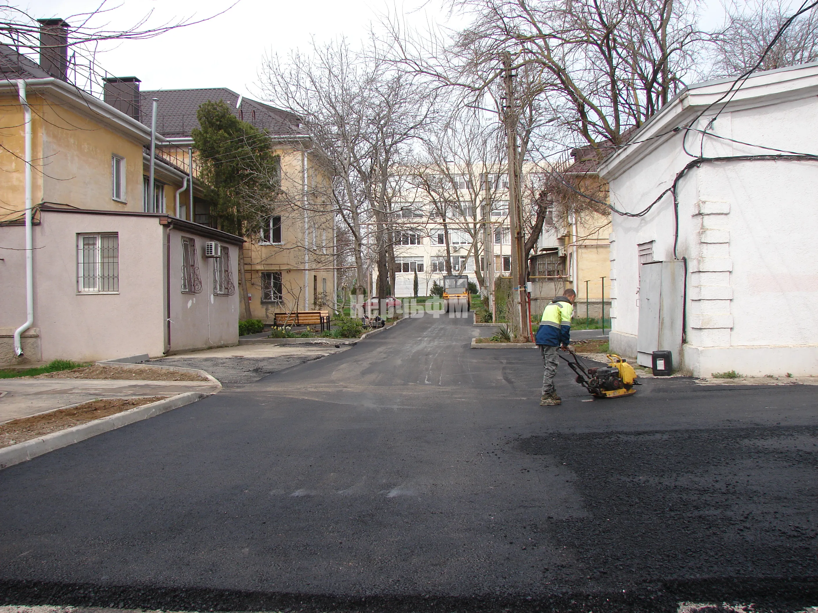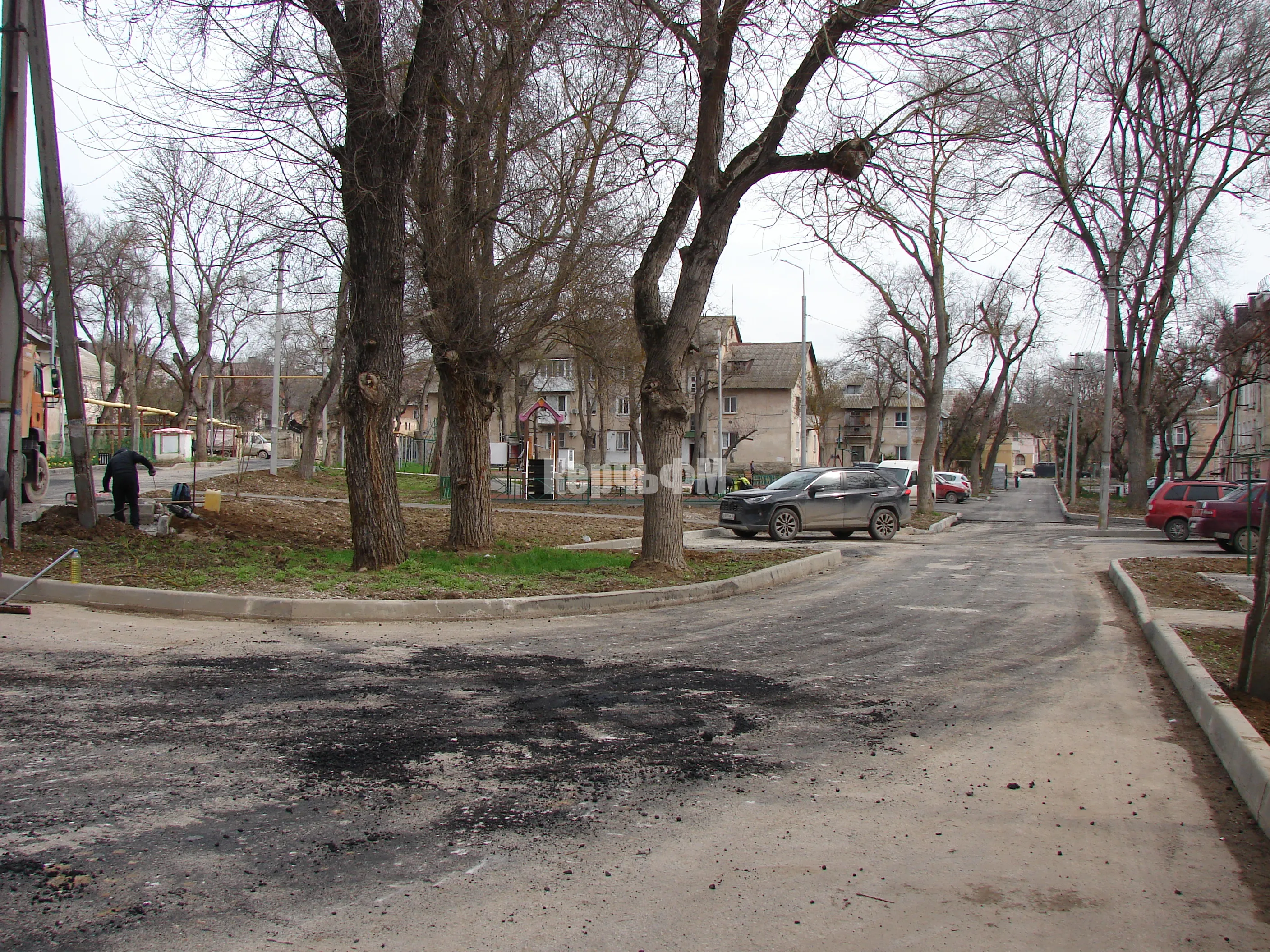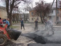 В районе МКД по Казакова, 48 в Керчи укладывают второй слой асфальта