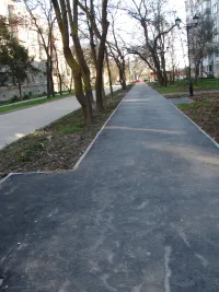 Во время благоустройства придомовой территории МКД по Сморжевского, 3  был полностью обновлен тротуар вдоль аллеи.