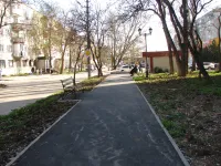 Находится аллея с фасадной стороны дома и ведет от улицы Генерала Петрова к супермаркету "4-М".