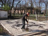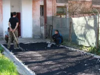 Теперь настала очередь укладки асфальта на уже подготовленные основания.