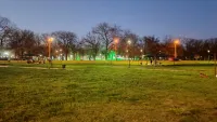 Через дорогу в Комсомольском парке находится платный туалет. Цена посещения 25 рублей и бесплатная улыбка кассира.