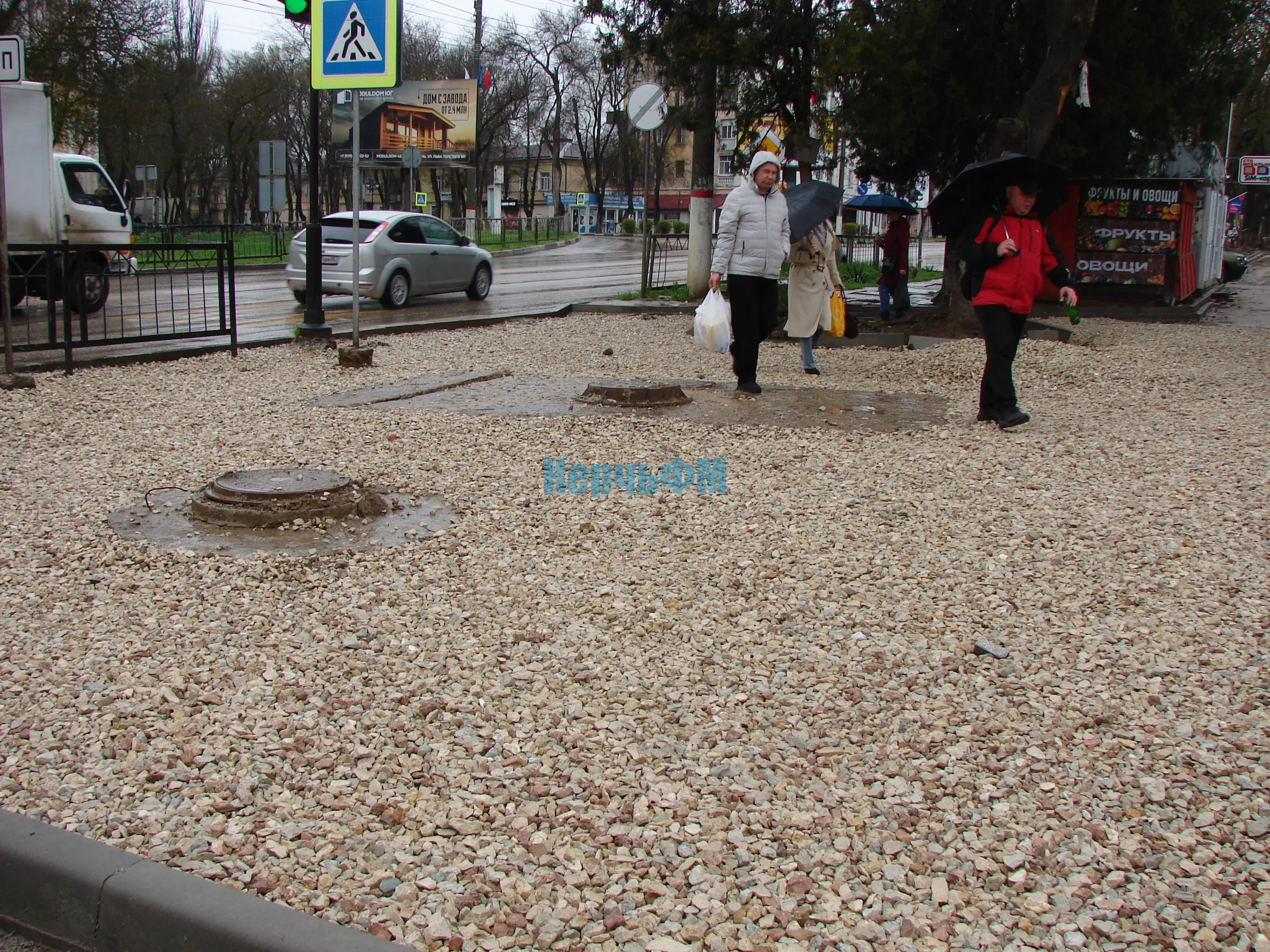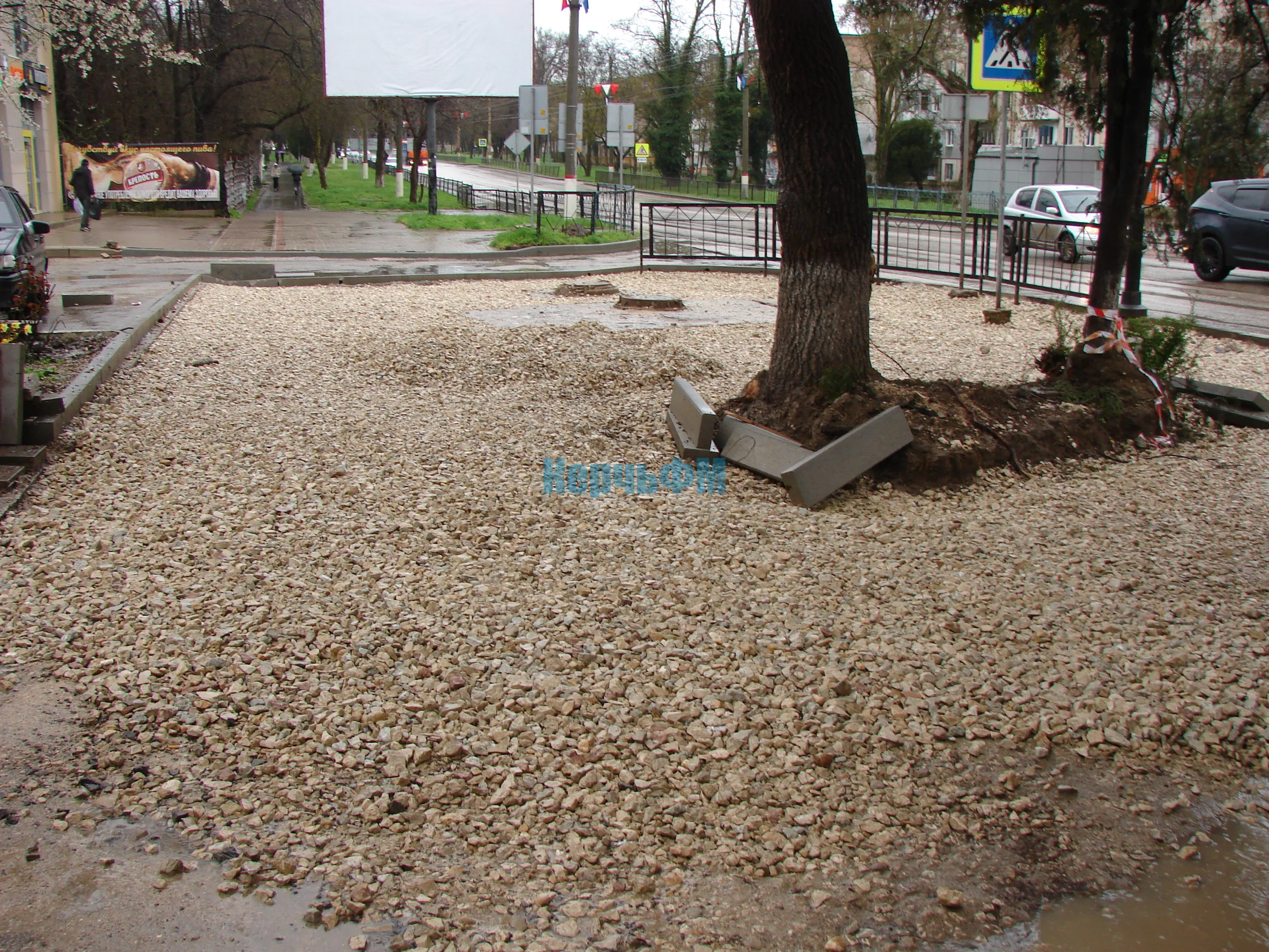Засыпан щебень и на дорожке, ведущей к Школе от супермаркета, а также на остановке "Казакова", передает КерчьФМ.