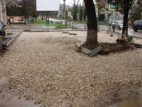 Благоустройство территории и сквера, прилегающих к Школе искусств им. Р. Сердюка, периодически останавливается.