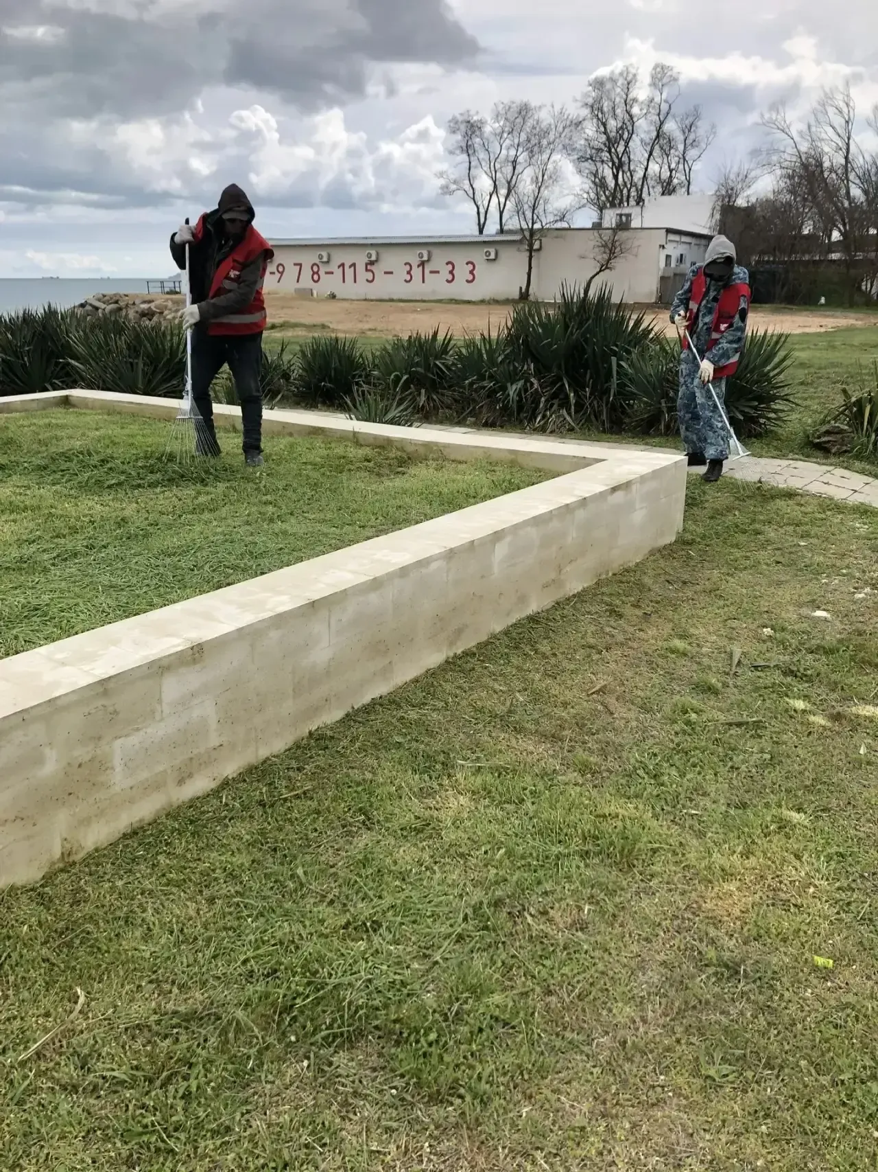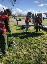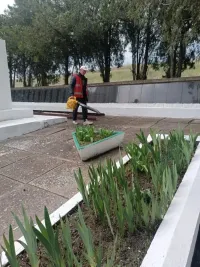 Выполняются работы по покосу травы, сбору мусора, веток и камней.