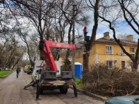 В районе домов по Сакко, 5 и 7 Служба городского хозяйства провела спил ветвей высоких деревьев.