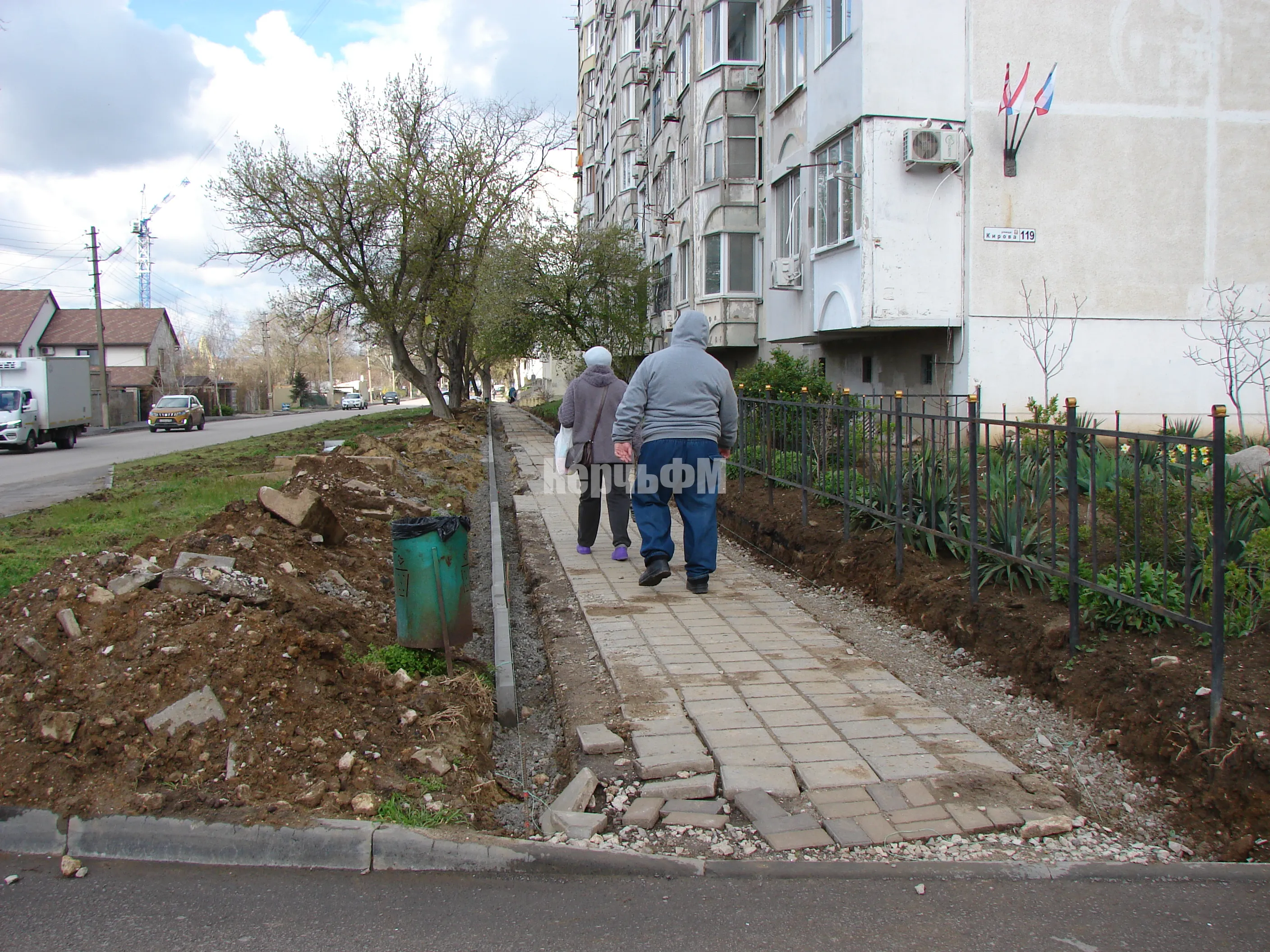 По Кирова в Керчи продолжается обустройство новых тротуаров