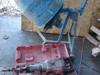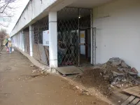 Другие рабочие готовятся к обустройству новых отмостков с правой и задней части библиотеки.