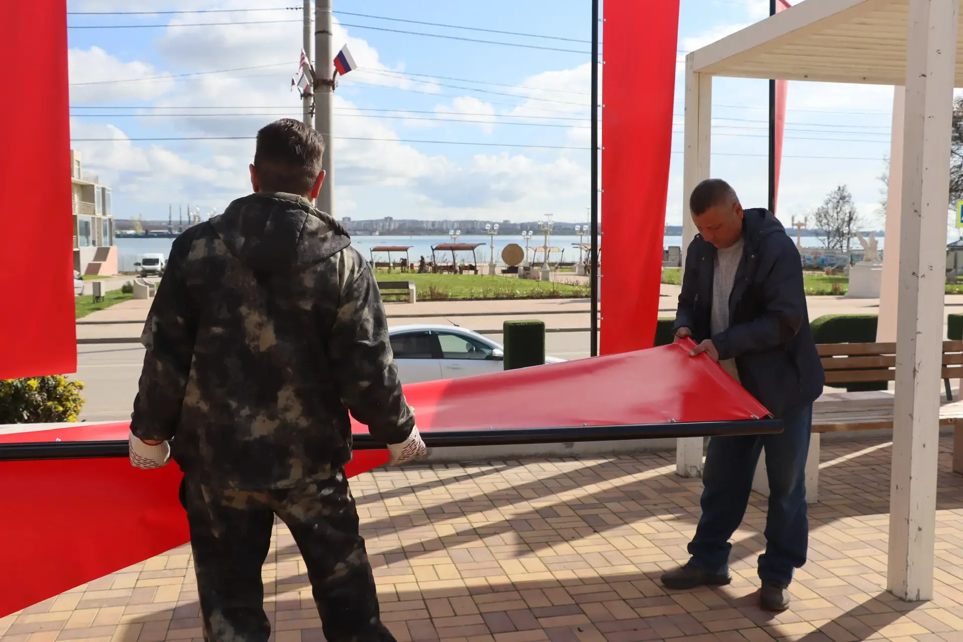 Инсталляцию «Город‑герой Керчь» оформили красно‑белыми полотнами - в цветах городского флага. Об этом сообщил глава администрации Олег Каторгин, - передает КерчьФМ.