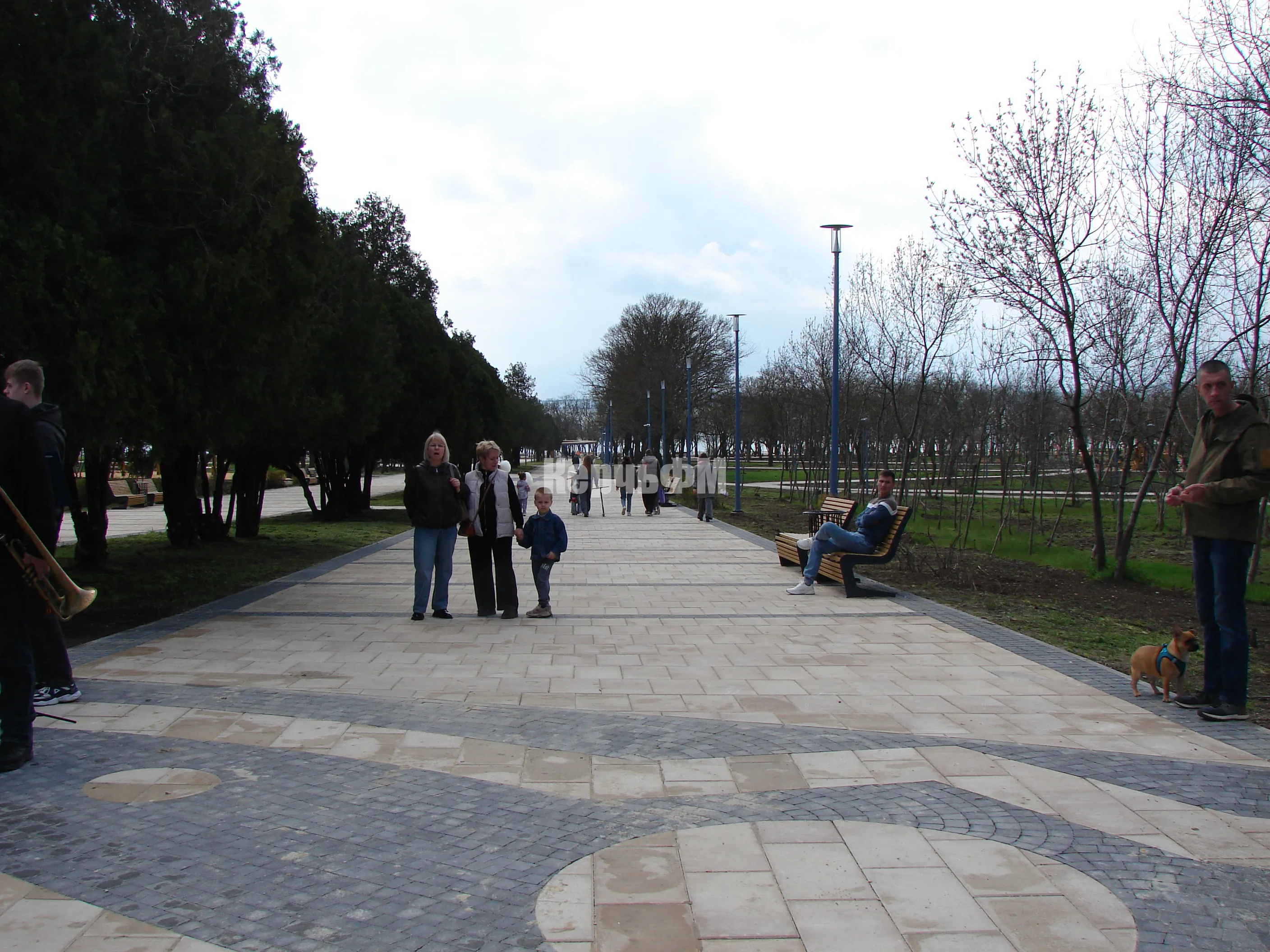 Играл оркестр, керчане прогуливались по аллеям парка, где было проведено комплексное благоустройство и оценивали перемены.