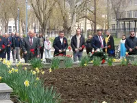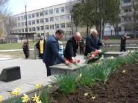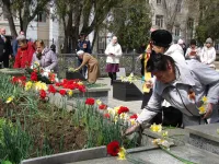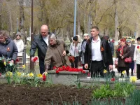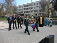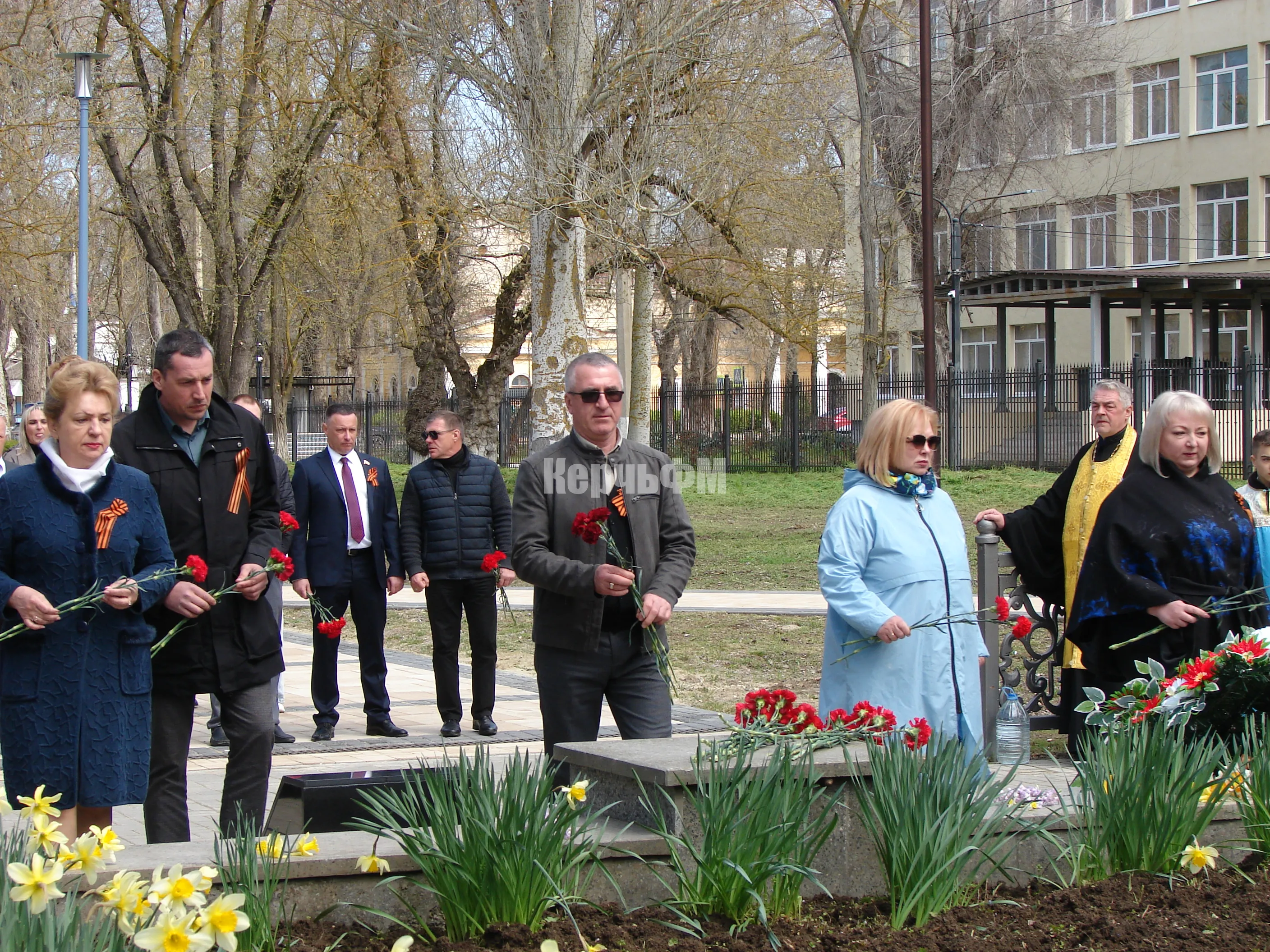 К его подножию керчане вместе с руководителями города, депутатами и представителями ветеранских организаций возложили цветы.