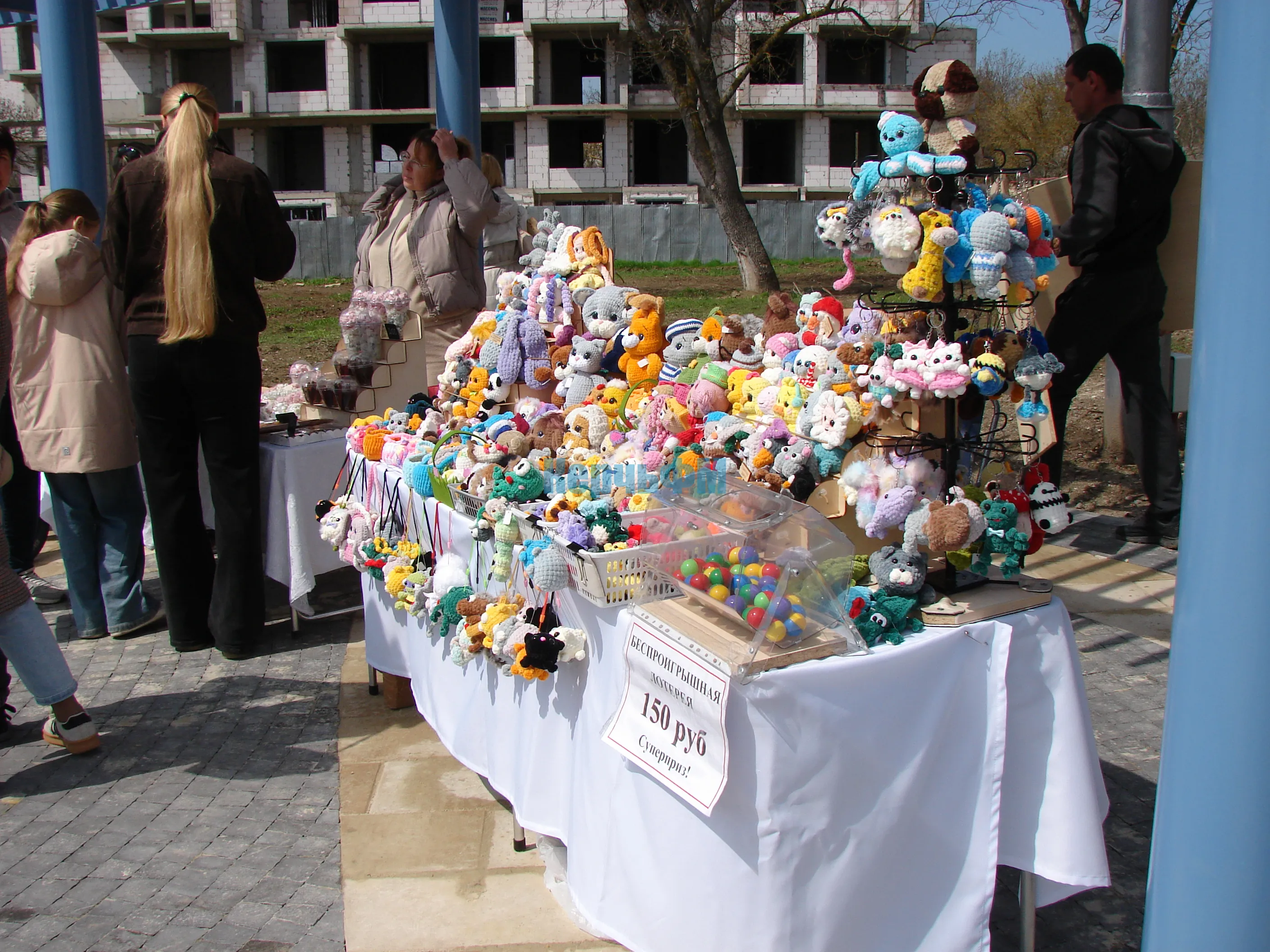 Под перголами рядом с фонтаном в самом парке работала ярмарка народных умельцев, которые представили свои изделия.