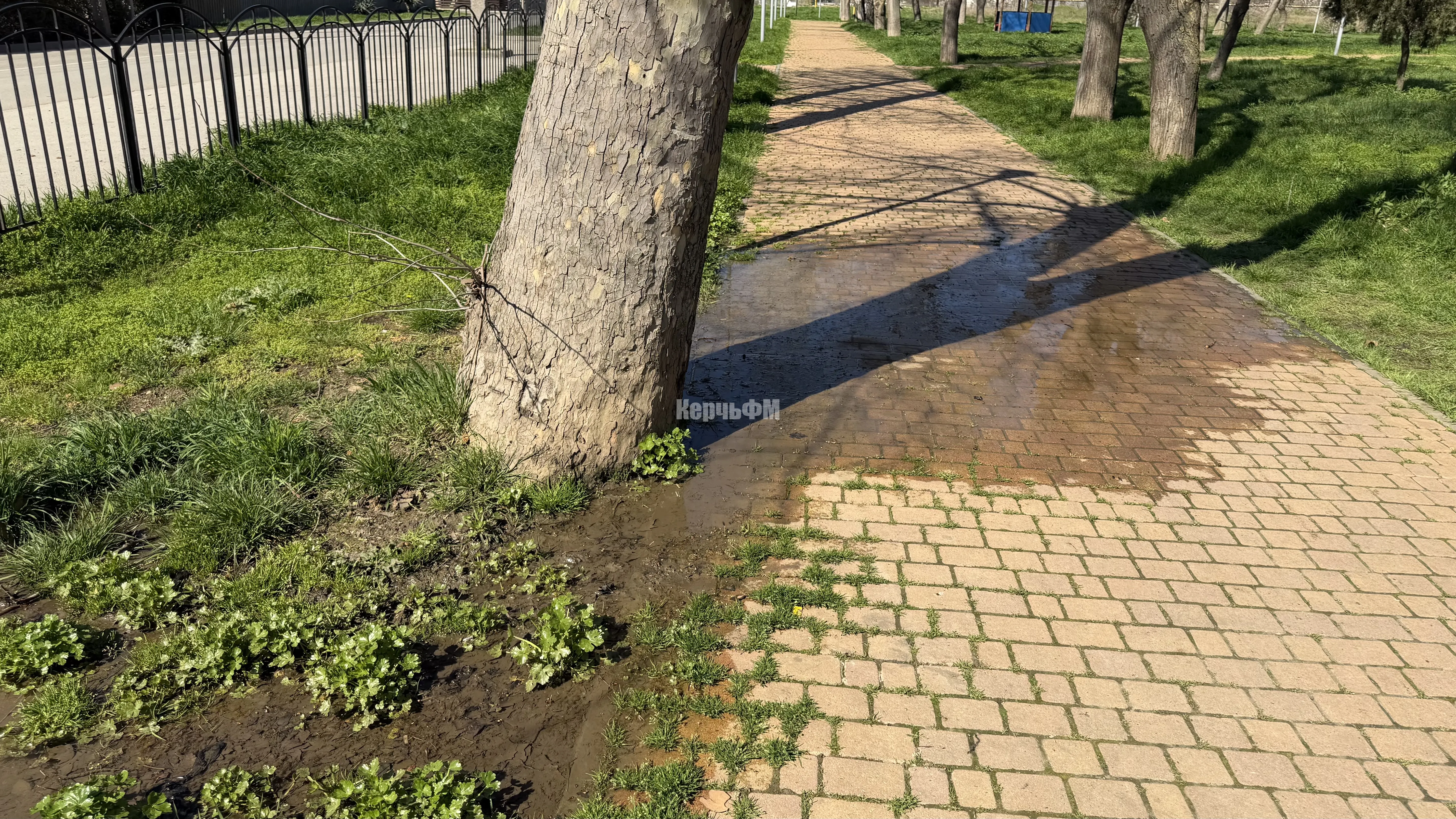В Керчи, в парке имени Гагарина, уже больше недели не могут устранить порыв водовода. Вода вытекает из люка, который находится на газоне, - передает КерчьФМ.