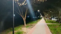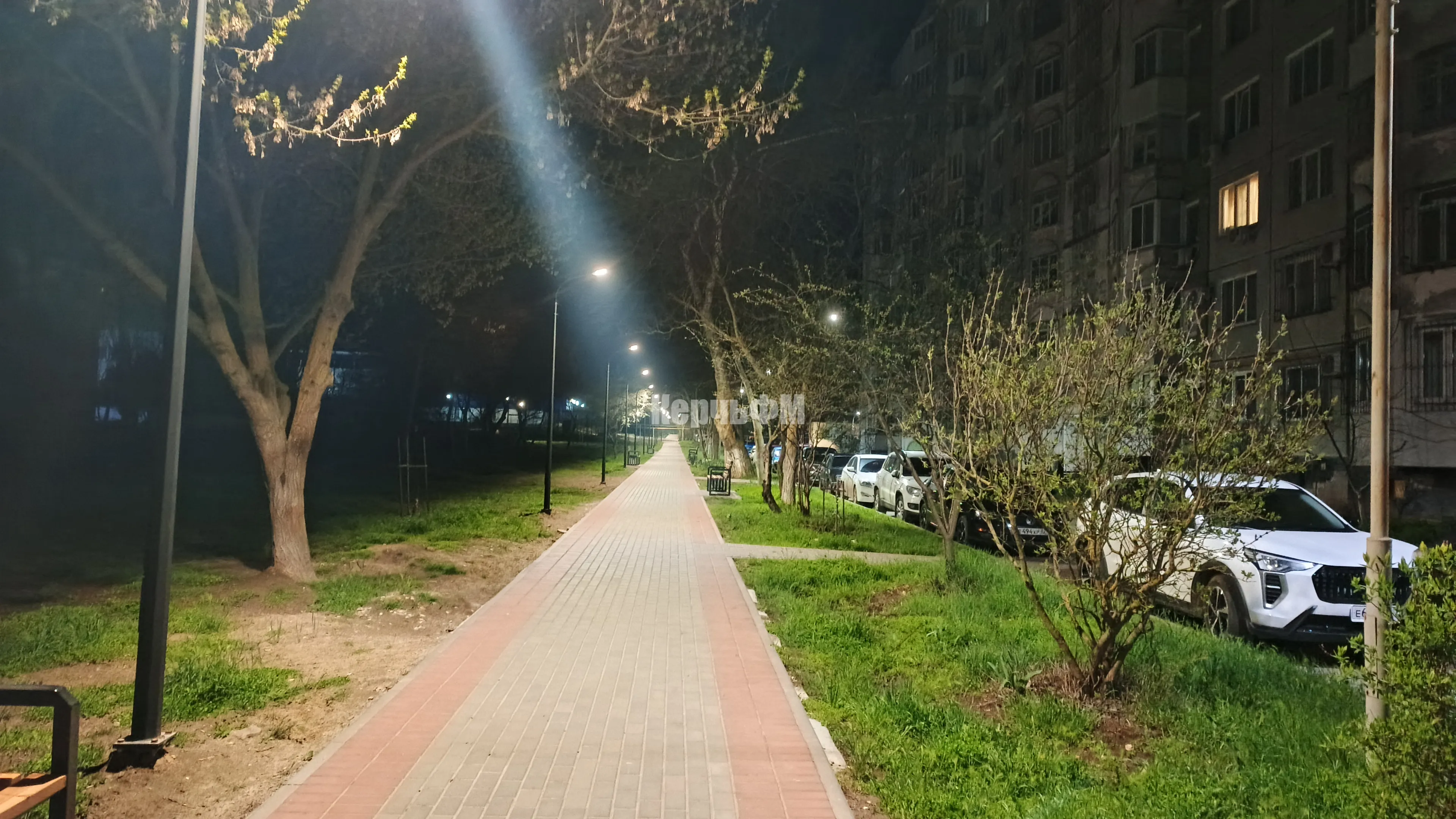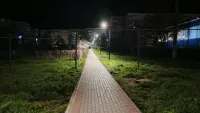 Ровный тротуар с пандусами и скамейками, а над ним по всей протяженности аллеи - новые светильники, которые создают в темное время суток здесь особый уют и атмосферу.
