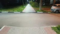 Отметим, что бордюрный камень занижен на всех примыканиях тротуара к внутриквартальной дороге, а также сделаны пандусы у парковки школы олимпийского резерва.