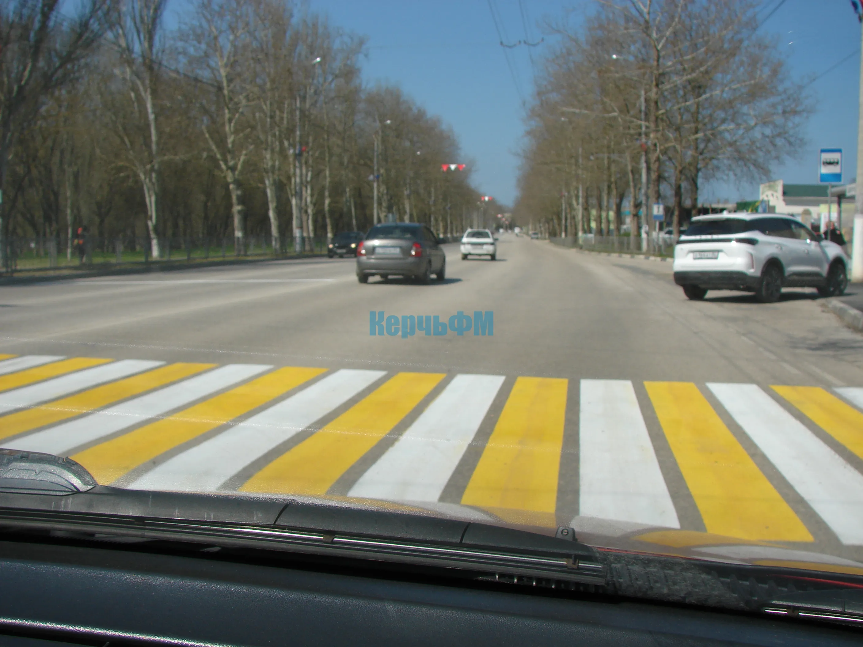 В Керчи обновили дорожную разметку на пешеходных переходах у остановок "Дворец пионеров"-"Луч"