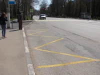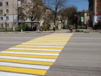 Дорожная служба провела работы по ее восстановлению на пешеходных переходах у остановок от "Дворца пионеров" до "Луча".