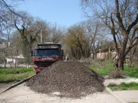 Проезд по улице Энгельса от улицы Суворова до улицы 12 Апреля перекрыт сыпучими материалами.