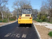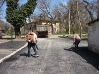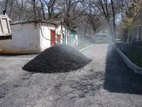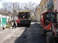 Сегодня подрядная организация "СУ-7" ведет укладку второго слоя асфальта во дворах и на заездах во дворы.