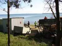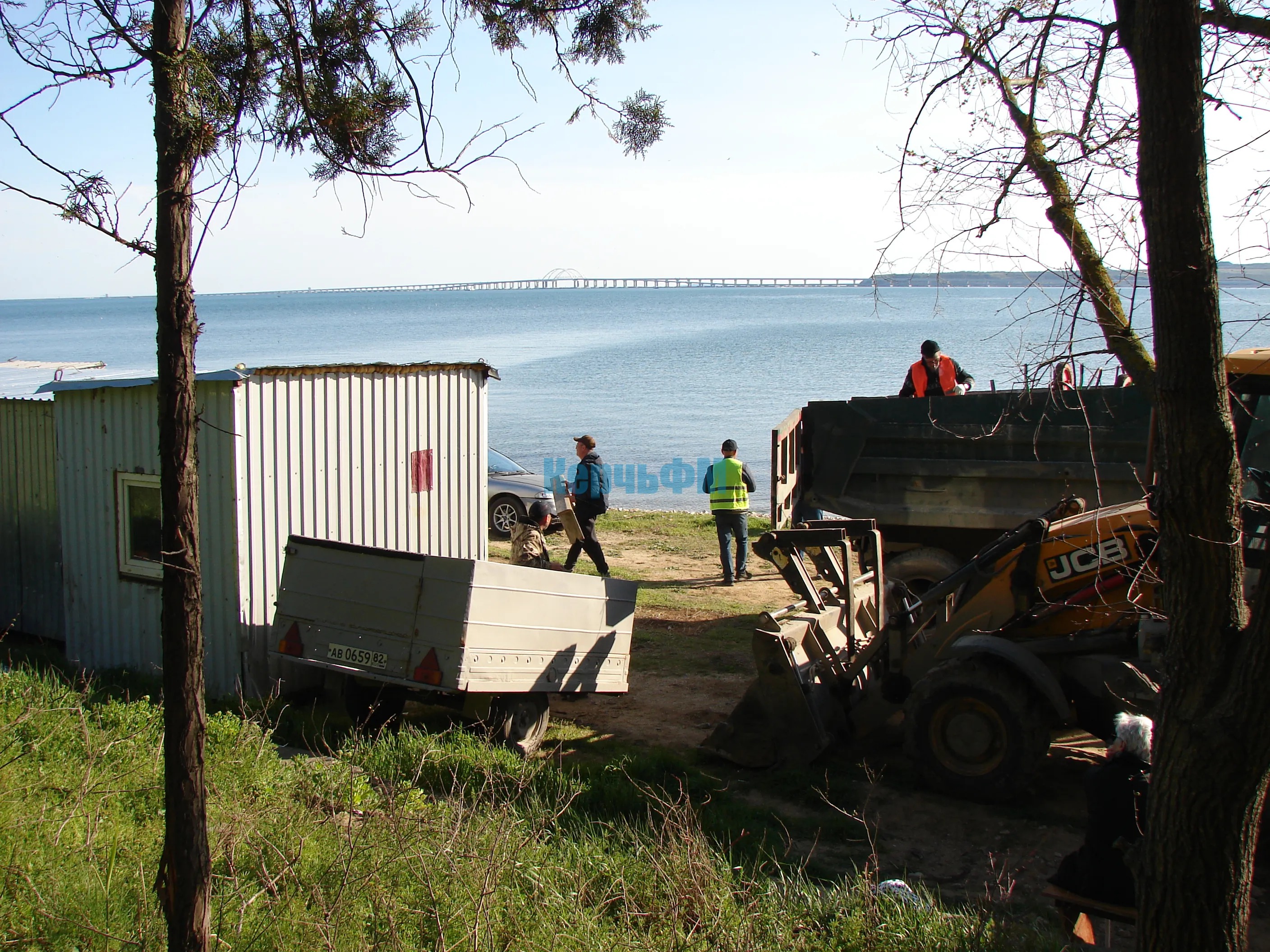 Внизу на пляже появились вагончики строителей, передает КерчьФМ.