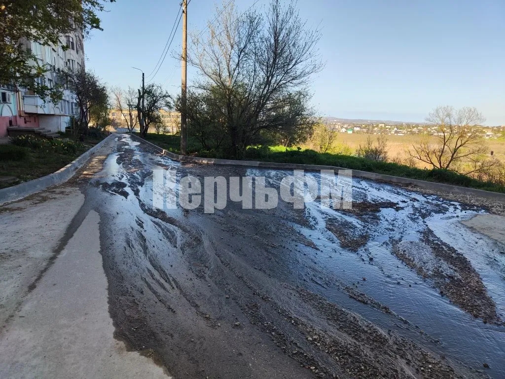 Ручьи со зловонным запахом устремлялись от дома № 52 по Шоссе героев Сталинграда  вниз к дому № 44, передает КерчьФМ.