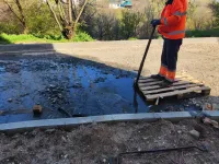 Были уложены новые бордюры вдоль дорог и тротуаров, а также асфальт.