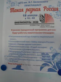 "В единстве народов - сила России" - под таким тематическим названием вечером в минувшую субботу состоялась Библионочь-2026 в Центральной библиотеке им. В.Г. Белинского.