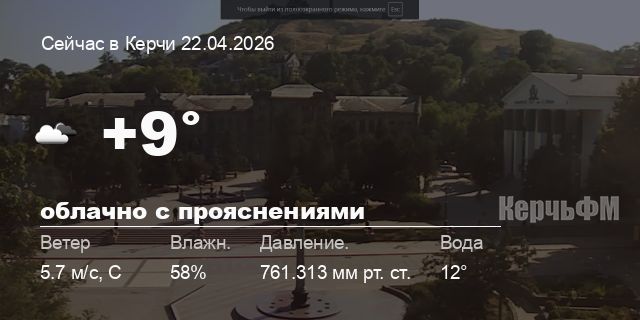 - Крым от +6.5° до +10.6°С, ☁️ пасмурно, море: 12°C