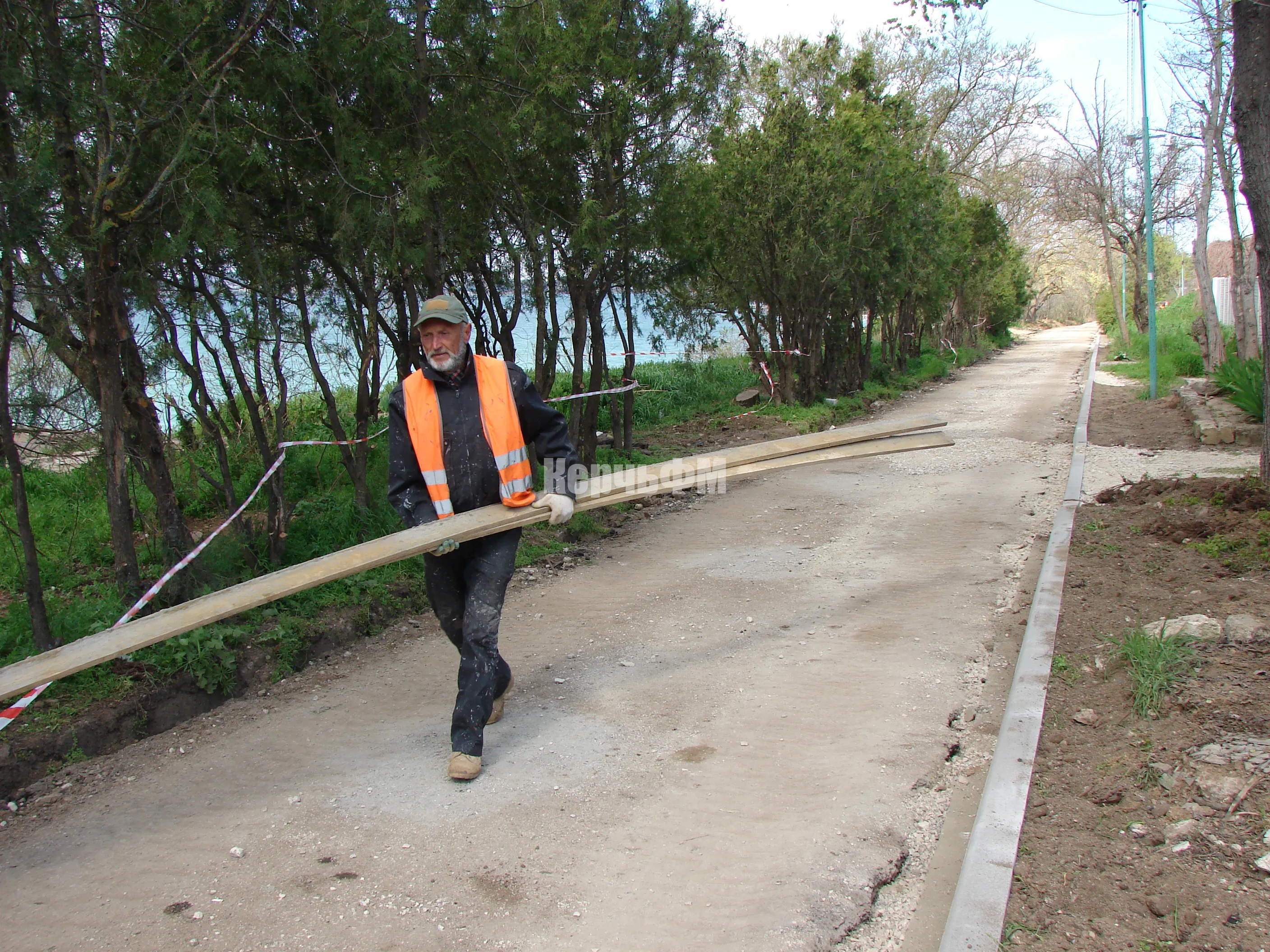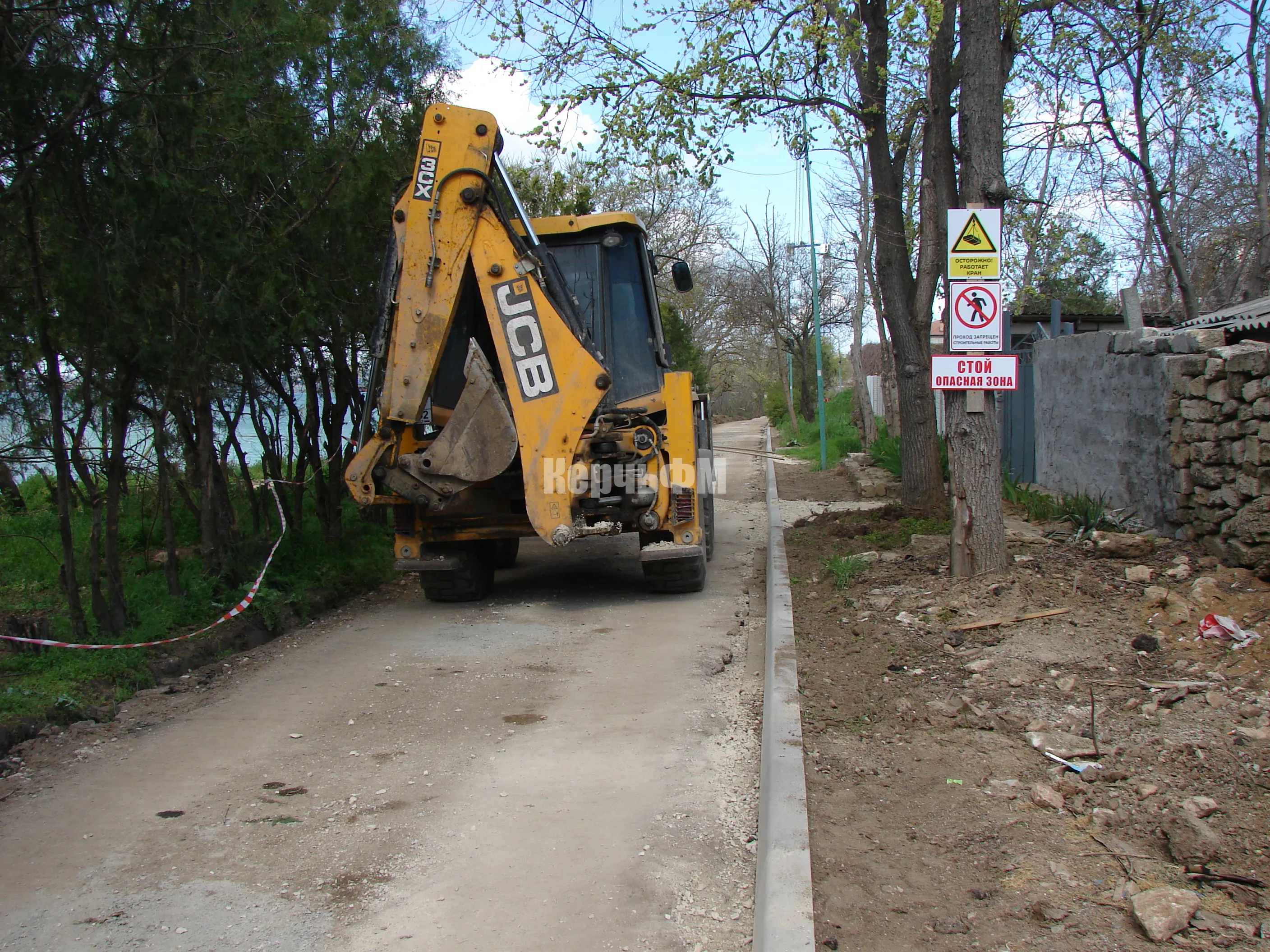 Сегодня рабочие продолжают готовить траншеи под бордюрный камень на спуске к морю.