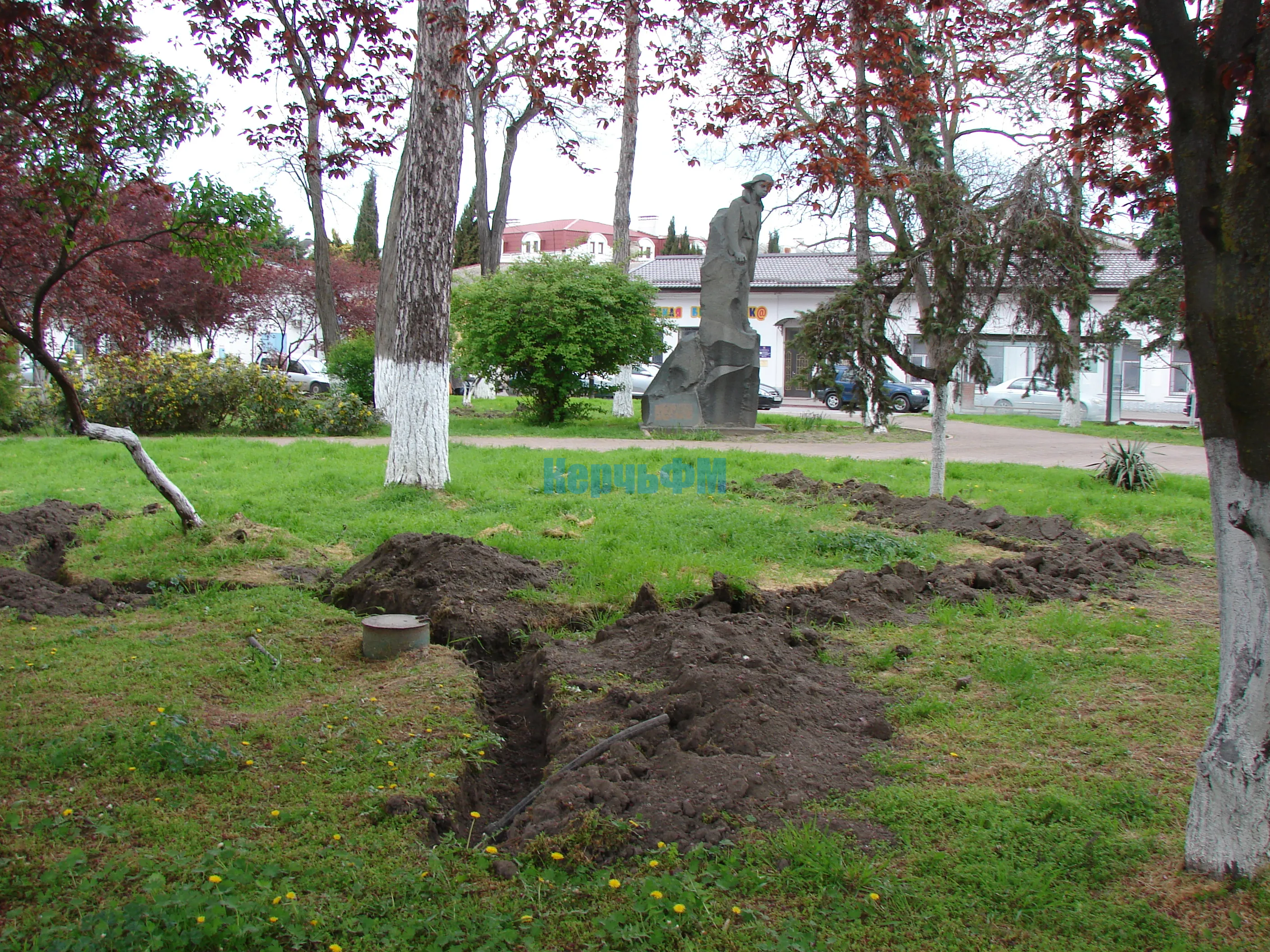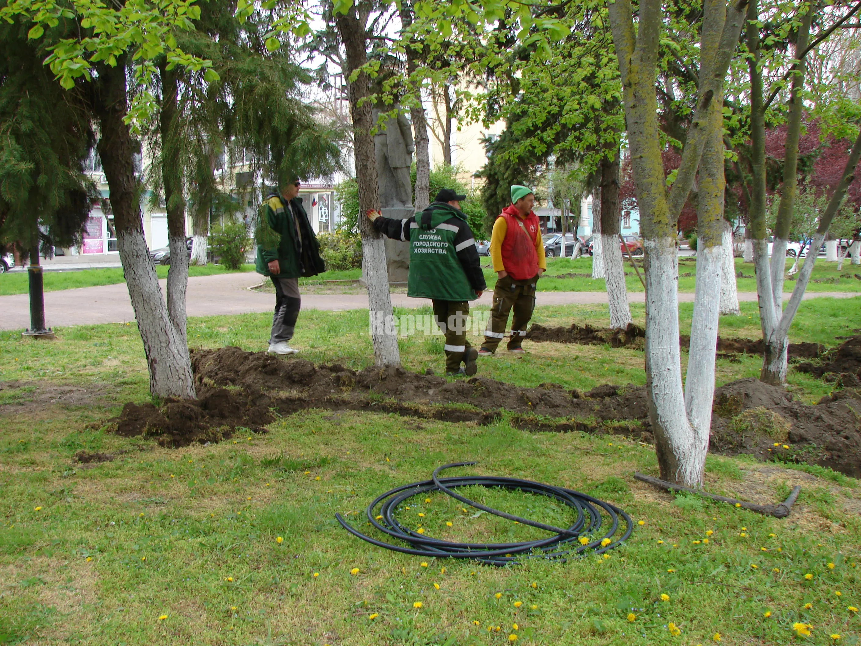 В сквере Дубинина Керчи продолжается монтаж автоматической системы полива