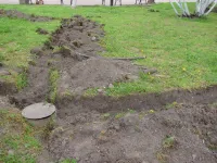 В уже подготовленные траншеи укладывают трубы для капельного орошения.