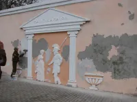 Штукатурка потрескалась, а в отдельных местах отвалилась.