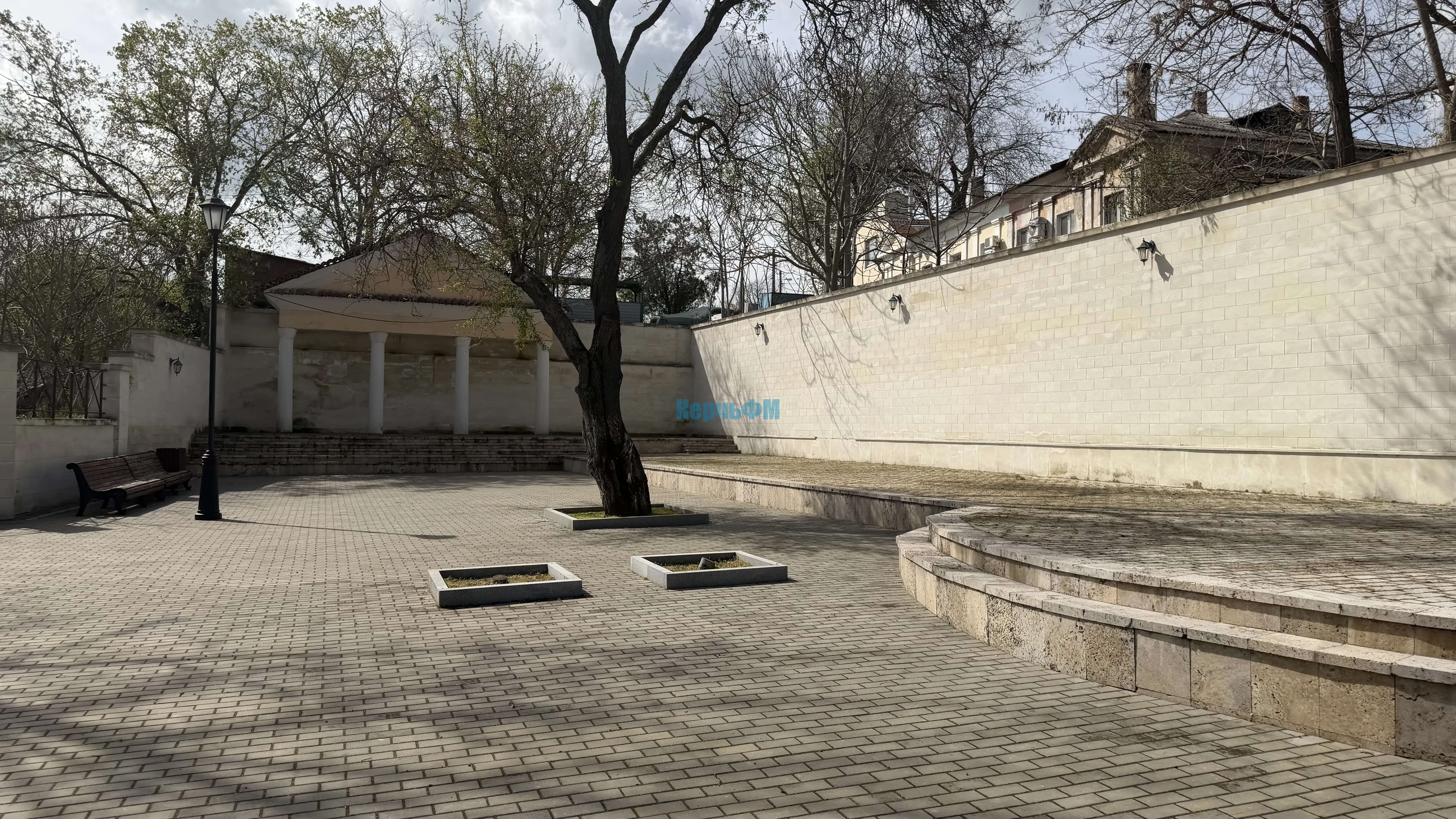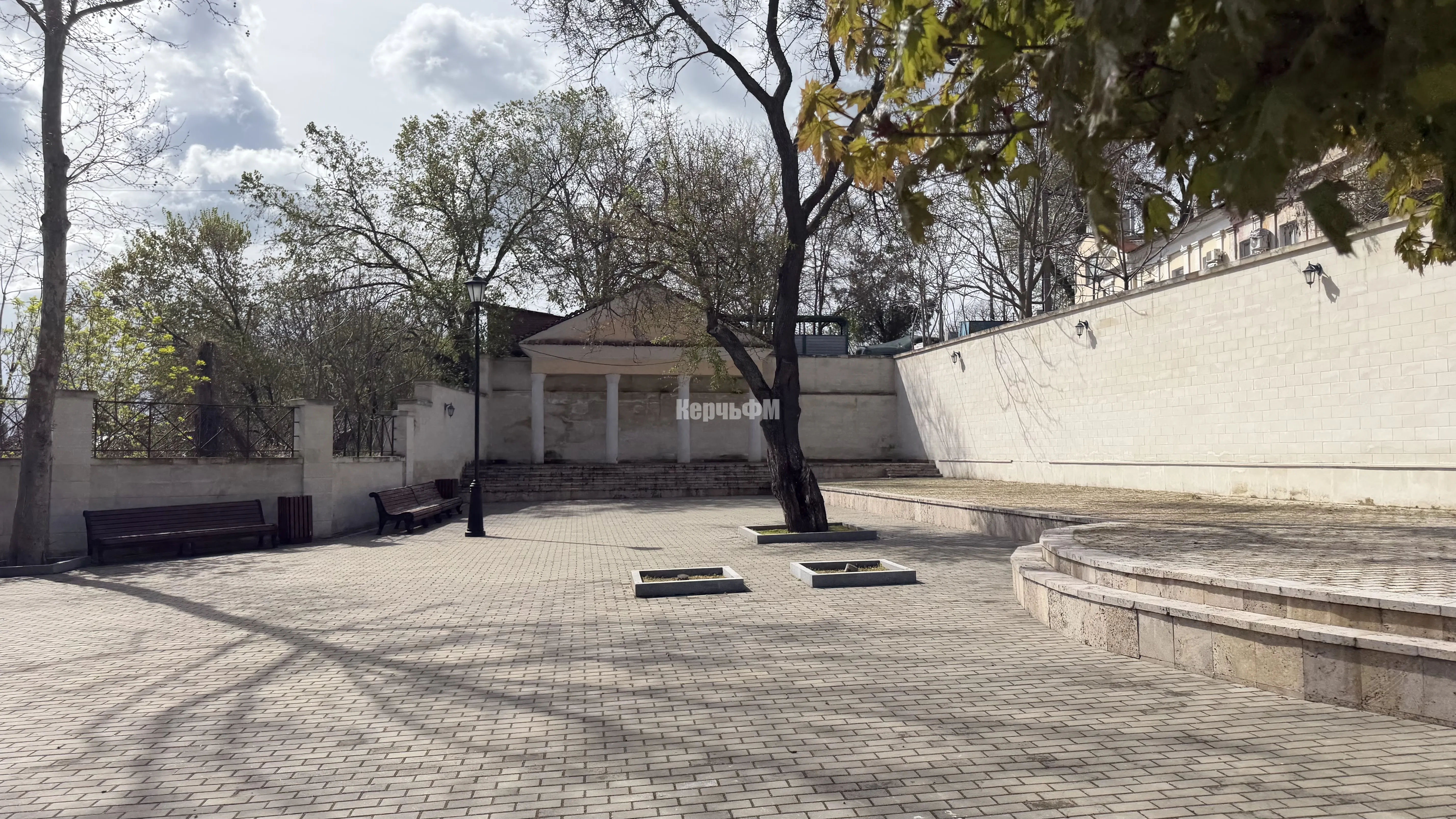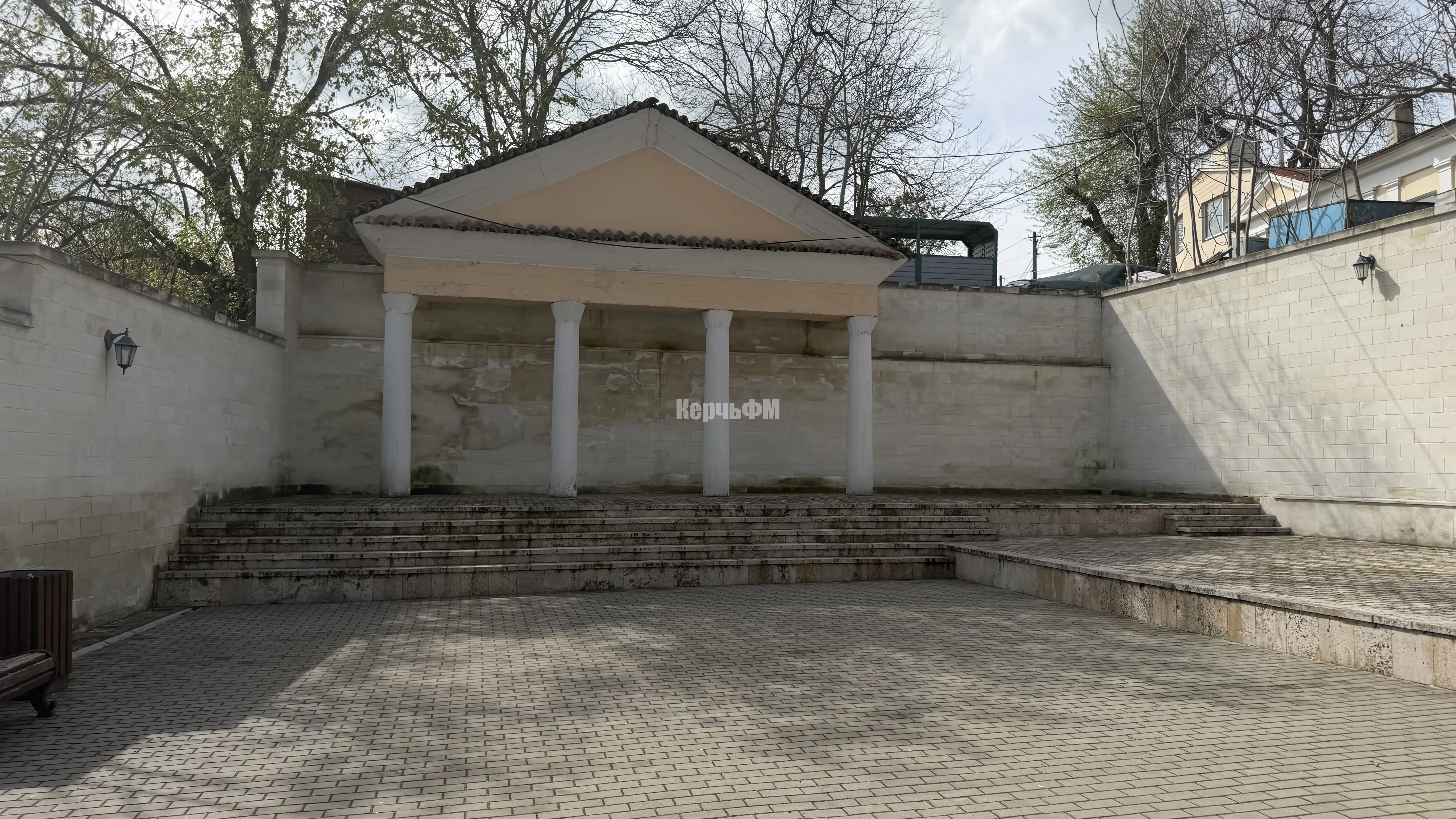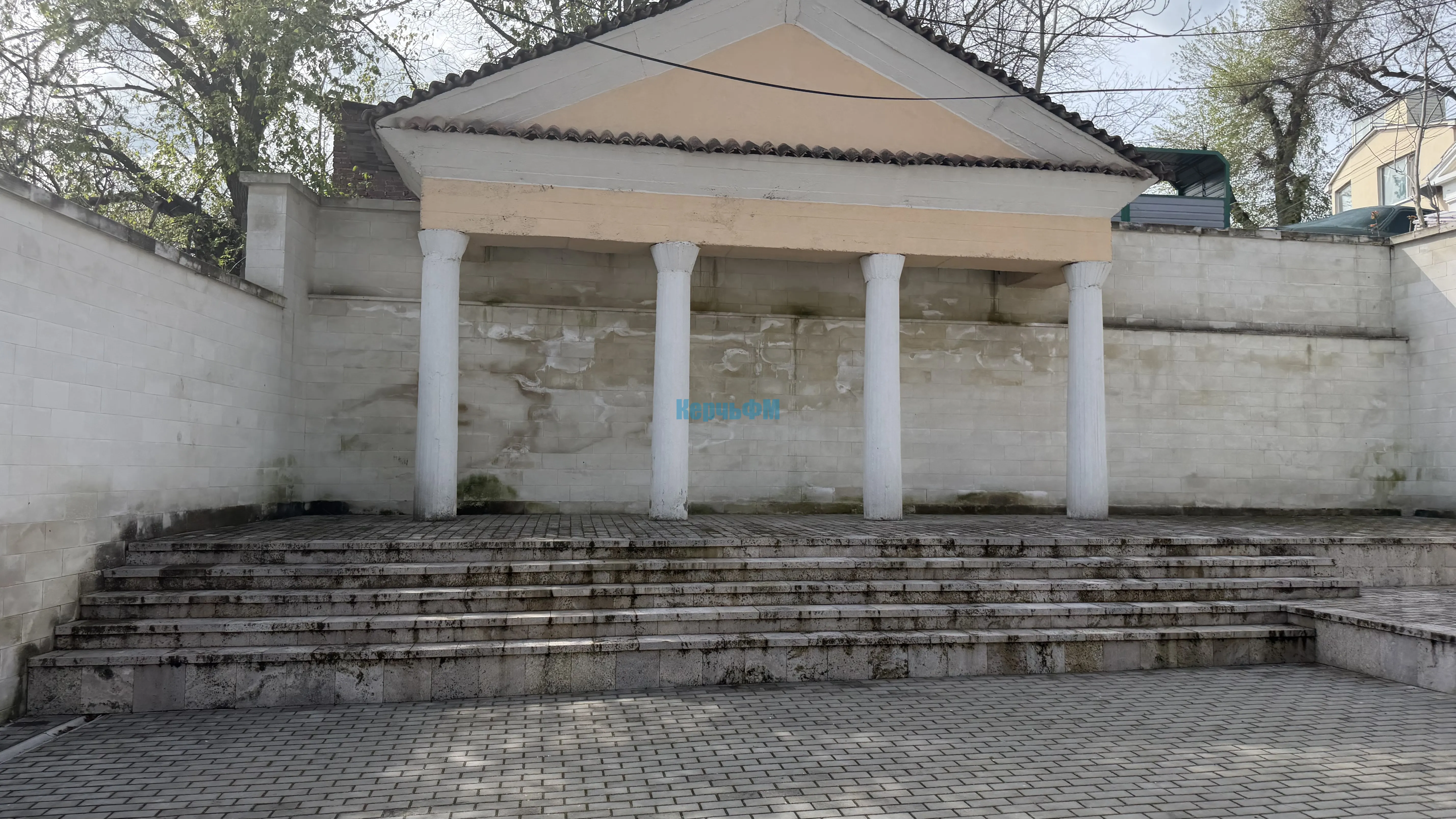 В Керчи сквер у подножия большой Митридатской лестницы требует очистки. Нужно помыть здесь стены, плитку и колонны. Также необходима и очистка от плесени, - передает КерчьФМ.