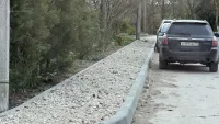 Тротуары уже подготовили к асфальтированию. Пока пешеходам приходится передвигаться по крупному щебню, что очень неудобно.