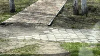 Горожанам теперь приходится ходить по ужасному тротуару: где-то просела плитка, где-то она вообще отсутствует. В темное время суток такой тротуар опасен для пешеходов.