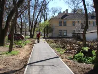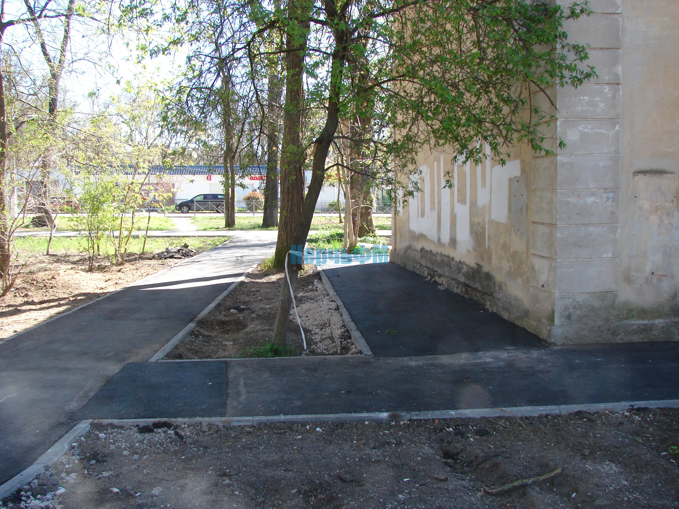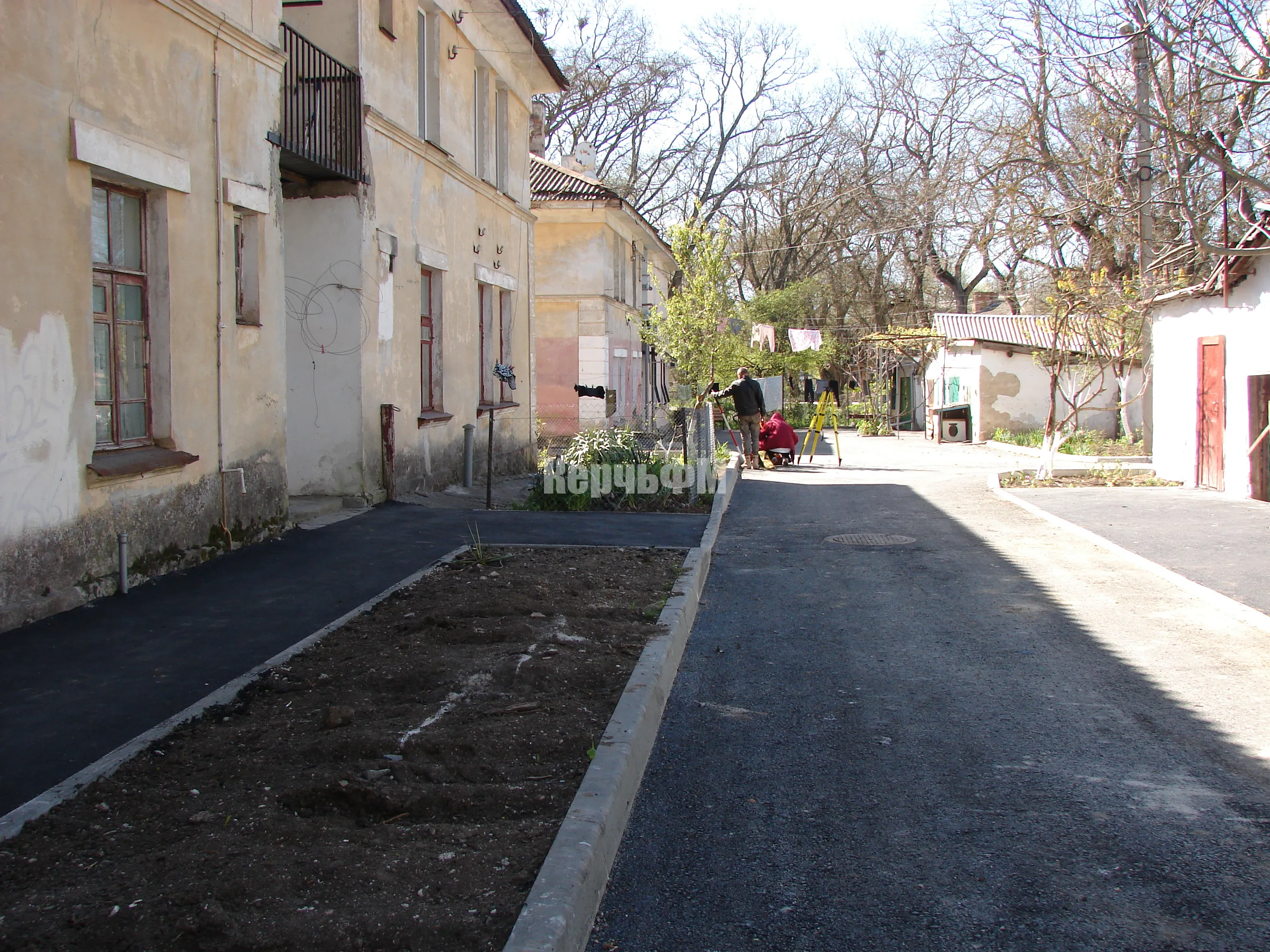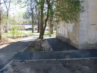 Проведена была расчистка от зарослей, укладка бордюров вдоль подъездной дороги и подводящих тротуаров, уложен асфальт вплотную к домам ликвидировав разрушенные отмостки.