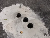 Взяты пробы и из отверстий в асфальтовом покрытии для проверки его качества, передает КерчьФМ.