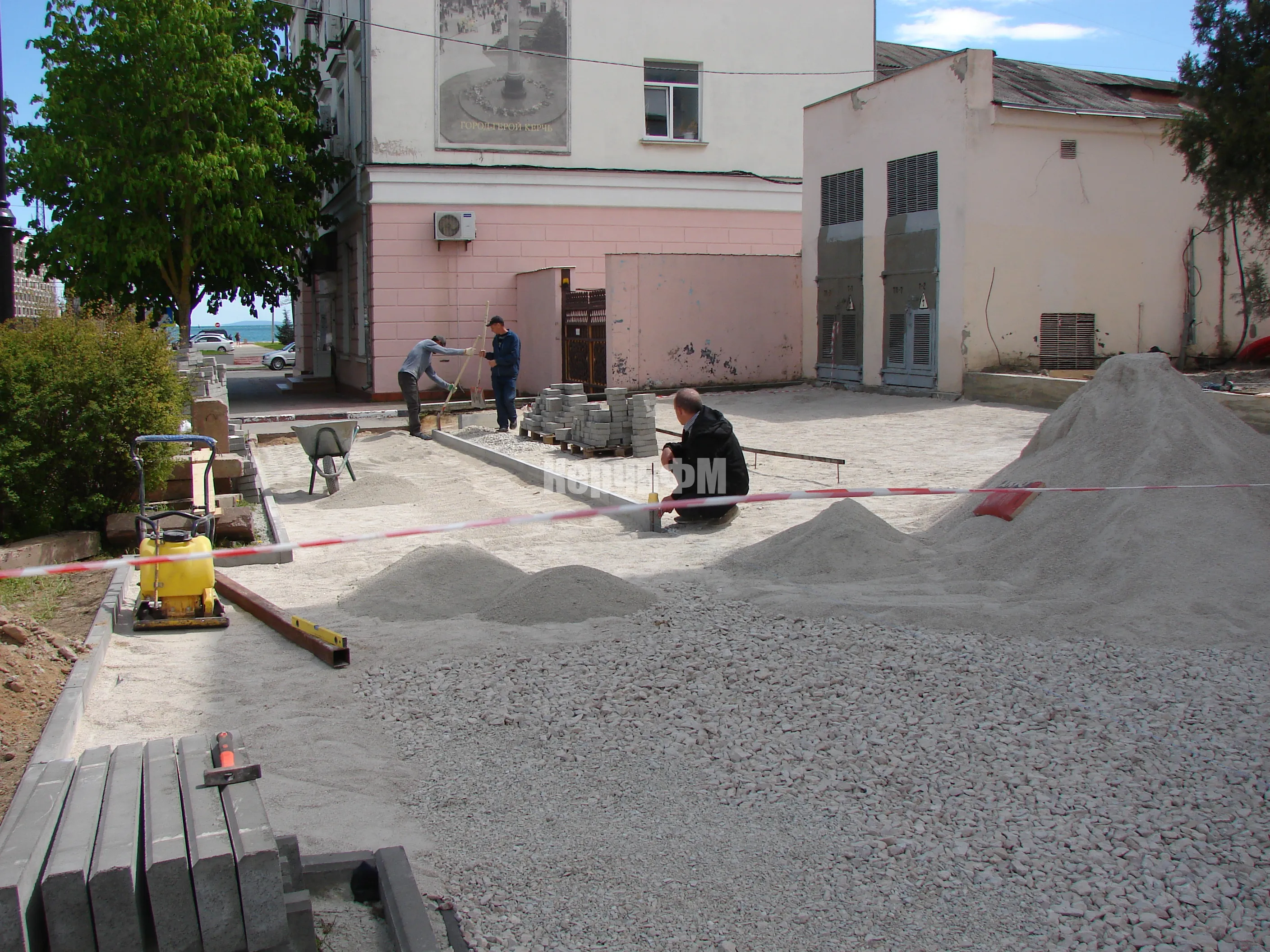 У здания Ленинской центральной районной больницы в Керчи делают новую площадку