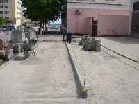 В рамках выполнения работ по капитальному ремонту наружных инженерных сетей и прилегающей территории поликлиники №2 ГБУЗ РК "Ленинская ЦРБ" сегодня продолжаются работы по подготовке территории у центрального входа к укладке тротуарной плитки.